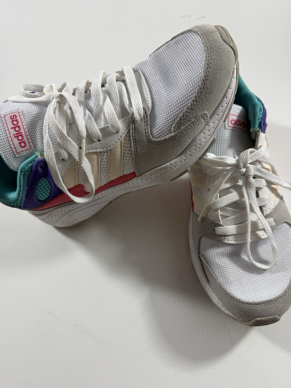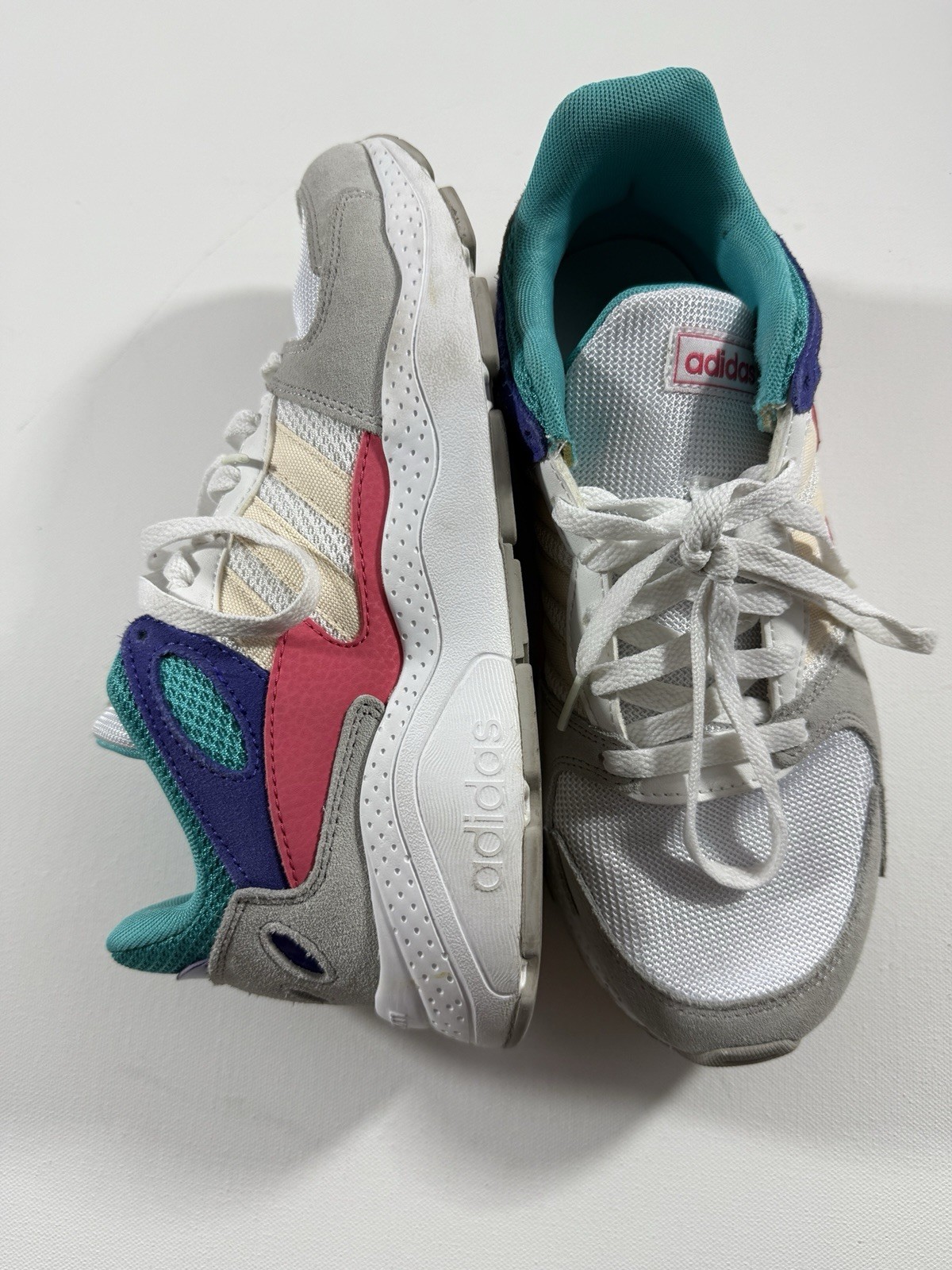 The Adidas Crazychaos EF9231 Women's 8.5 Teal Pink Purple Retro Running Shoes are stylish and comfortable athletic sneakers designed for women. With a retro theme, lace-up closure, and vibrant teal, pink, and purple colors, these shoes are perfect for summer, fall, and spring activities like gym workouts and jogging. The adidas brand ensures quality and performance, making these shoes a great choice for active women looking for a fashionable and functional footwear option.