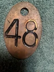 This antique/vintage solid brass cow cattle number tag #48 is a unique addition to any collection. Crafted in the United States, this tag is made from high-quality brass and features intricate details. It is perfect for those who love farm and countryside collectibles, especially those interested in cows. This tag is designed for easy identification of cattle and features a durable construction that can withstand the test of time. It is not handmade and does not come with any California Prop 65 warning. This tag is ideal for collectors or anyone interested in vintage farm equipment.
