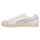 Clyde NYC x EB Lace Up Sneakers Product Details Full leather upper with suede overlays Lace up closure City worn contrast Puma Formstrip overlay at side Embossed NYC token logo on tongue Rubber outsole provides durable grip and traction The EB x Puma Clyde comes constructed with a full leather upper and suede overlays. “City Worn” contrast on the Puma Formstrip overlay at the side with perforations for breathability and Clyde callouts on the lateral. “NYC” embossed on the tongues, branding on the lateral midsole and co-branded leather insoles completes the design. Additional Details Color: White Occasion: Casual Gender: Mens Age: Adult Brand: Puma