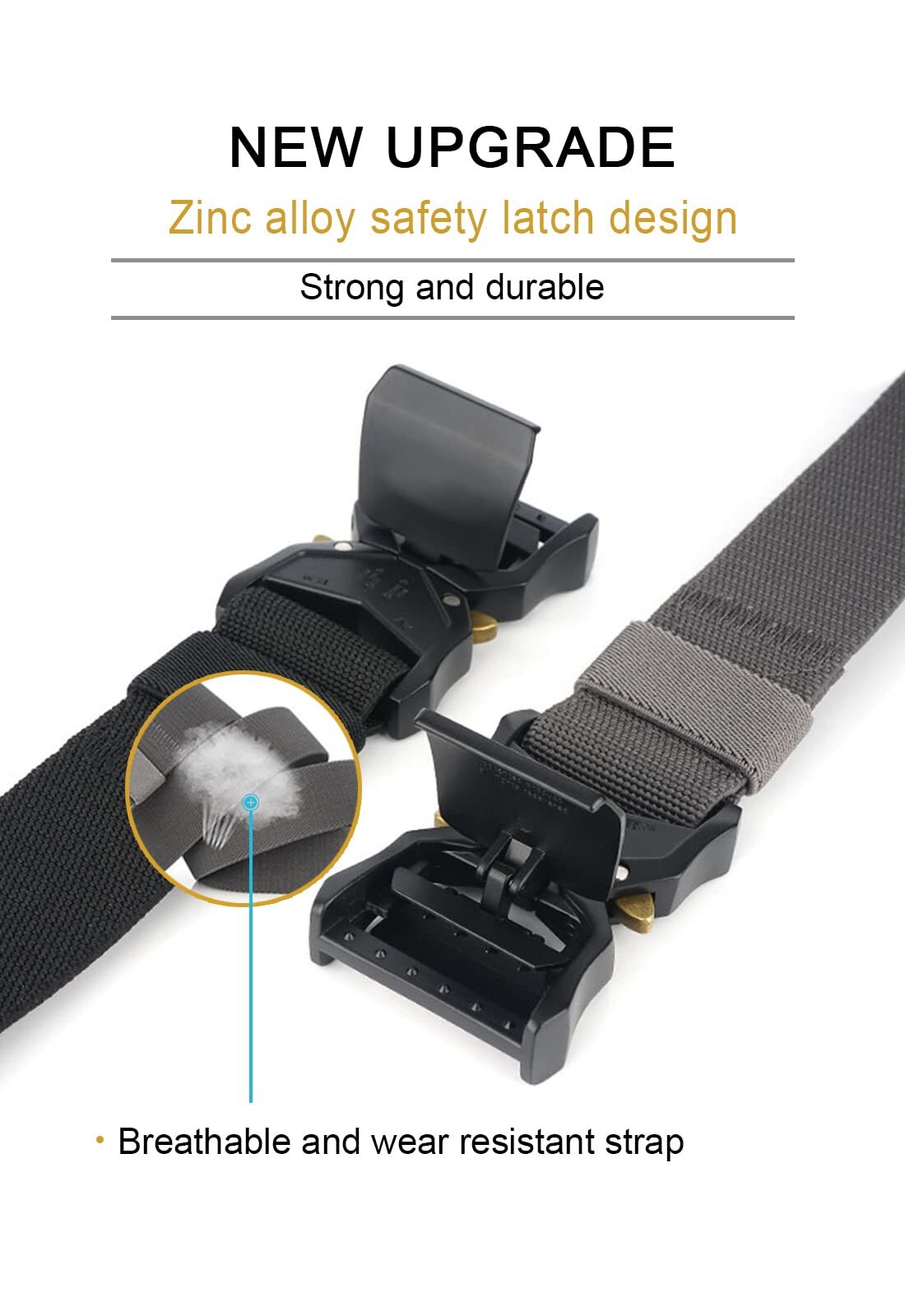 DURABLE COMBAT-READY CONSTRUCTION-Made With Heavy Duty IndustrialNylonMore than that, it is very sturdy, which make your waist be more comfortable as well as stay tight, when you take large range of activities. UNIQUE DESIGN-If you are looking for a belt that reflects your outstanding personality,This belt touts the high-quality metal quick release belt,The crafted heavy-duty buckle, made of zinc alloy, has very strong load-bearing capacity, which can meet your different wearing requirements. FIT EVERYWHERE-It is widely used for outdoor activities, such as camping, hiking, cycling, fishing, mountain climbing, travel, field training, etc. The automatic belt design is elegant, suitable for jeans, casual pants, suit pants,Perfect mens casual belt that will soon become your favorite go to everyday leather belt. EASY TO USE-Slide the belt into the sliding, pull the leather belt through, then click-itsimply automatically locks. To release the casual belt, gently push the lever on the side of the automatic buckle, then the lock snaps shut. Simple! RISK FREE ORDERS-We are committed to making our customers satisfied. If there is any problem with the product, contact us without hesitation.