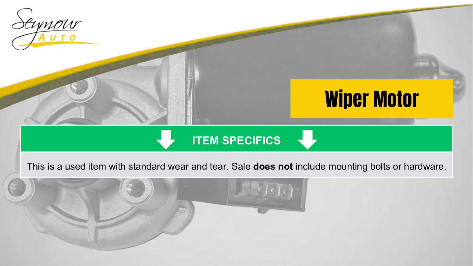 Hollander Welcome to our eBay store! Windshield Wiper Motor Wiring Connector On Motor Fits 03-07 CARAVAN 1291719 Description Donor Vehicle Model : TOWN COUN Year : 2006 Mileage : 0 (0 = not available or unknown) Stock Number : 029839 Notes : This Part Will Fit These Makes And Models With These Options CARAVAN 03-04 wiring connector on motor CARAVAN 05-07 (wiring connector on motor) TOWN & COUNTRY 03-04 wiring connector on motor TOWN & COUNTRY 05-07 (wiring connector on motor) VOYAGER 03 wiring connector on motor About Us Payment Shipping Returns Warranty About Us We are a locally owned business with over 70 years of experience in the automotive industry with an extensive collection of used car parts and accessories for thousands of different vehicles. Our knowledgeable and caring staff work hard every day making sure all of our parts are high quality and functional to fit your needs. We are happy to verify fitment for you prior to purchase via your vehicle’s VIN (Vehicle Identification Number). Please contact us with any questions prior to purchasing. Orders are sent to the shipping department throughout the day therefore we cannot guarantee adjustments to orders after payment is received. Payment Payment details: Please contact us with any questions prior to purchasing. Orders are sent to the shipping department throughout the day therefore we cannot guarantee adjustments to orders after payment is received. All orders must be paid in full prior to shipment. Payments are processed through eBay by eBay. If payment is not received within a reasonable time from when the order is placed, it will be cancelled without notice. All purchase prices are final. No price match or discount can be made while an item is awaiting payment. Shipping Shipping Details: Items are shipped after being paid in full. We only ship to US addresses within the continental 48 states. Shipping to AK, HI and PO Box's require a special rate and are subject to additonal charges. All parts listed with Free Shipping have a one day handling time and may not be picked up by the carrier the same day the part is ordered. Any estimated delivery dates provided are only estimates and are not guaranteed to be accurate. We are not responsible for any delays with UPS, Fed-Ex or USPS. We must be contacted same day if an item is received damaged. All address changes must be completed before the part is shipped. Address changes that take place after the part has been shipped are subject to an address change fee. Overnight and expedited shipping options are available for an additional cost. All parts listed as, Pick Up Only , can be shipped if the shipping cost is covered by the buyer. All parts listed as, Pick Up Only , will be held at Seymour Auto Wrecking (107 New Haven Rd, Seymour CT 06483) for the buyer. International orders are shipped via eBay’s Global Shipping Program. We are not responsible for any shipping charge associated with eBay's Global Shipping Program. We are unable to change the delivery address on all orders shipped through eBay's Global Shipping Program. eBay must be contacted directly. We are not responsible for any delays or issues reagrding any item purchased and shipped through eBay's Global Shipping Program. Returns All parts sold have a standard 30-Day return window. Return Details: We must be contacted within 30 days of the carrier provided delivery date for the return to be accepted. No return wil be accepted if contacted after 30 days from the carrier provided delivery date. We may require more information reagrding a return request. ex: pictures, receipts, videos, etc. A free return label will not be provided for remorse return reasons. ex: changed mind, ordered by mistake/by accident, didn't like it The buyer must ship the return within 21 days of receiving a return label or starting a return. All returns must be sent in the appropriote sized box with adequate packaging. Any return received damaged may be eligible for a refund deduction. All returns made must be occompanied with a return reason. All returns that are received without a reason will not be processed. If a return label is issued by eBay, we are not responsible for reimbursing the buyer for the cost of the label. In the event the part returned does not match the original part sent, a case will be opened up with eBay. Warranty All parts come with our standard 6-month warranty. Please contact us for more details prior to ordering. The warranty begins as soon as the buyer takes possession of the part. Standard 6-Month Warranty: If a part is proven to be defective within the 6 month warranty period, a replacement or refund will be sent at our discretion. We are not responsible or liable for any incidental or consequential loss or damage. We will require more information reagrding a warranty request. ex: pictures, receipts, videos, etc. No warranty claims or reimbursement on labor. All body parts are sold as is. Any part that is damaged or altered by the buyer will not be eligible for warranty or return. No warranty claim can be made based on color or trim package. We are not responsible for the buyer's error. ex: Accidental orders, late address changes. We do not offer an extended warranty with eBay. If you experience any issue with your part, please contact us prior to attempting to repair or remove the part. Failure to do so will void the warranty. We make no claim as to the suitability of any part for any particular purpose. The buyer is responsible for determining the suitability of the part purchased for its intended purpose. In the event an incorrect part is shipped, please contact us immediatley so an exchange can be processed. Copyright © 2022, All Rights Reserved. Template Design & Developed By: Copyright © 2022, All rights reserved. Design & Developed By : eFusionWorld