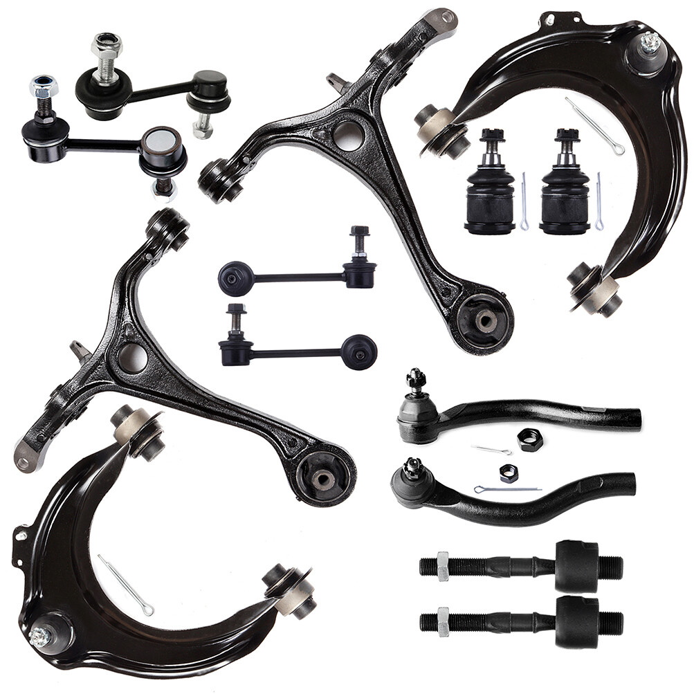 Compatibility should be checked and confirmed before placing order! Steps of confirming the compatibilities: Manage " My Garage ", and chose the right one when placing order; Or chose the " Year / Make / Model / Trim / Engine " of your vehicle on the compatible chart; Or Contact us if you have any question in confirming the compatibility, to make sure you will get the right and compatible item. Fitment: 2004 - 2008 Acura TSX All Models 2003 - 2007 Honda ACCORD SEDAN & COUPE With 2.4L Engines Only Upper Control Arms Come Pre-Assembled With Ball Joints Package Included: 1x Part# Front Right Upper Control Arm With Ball Joint - K620616 1x Part# Front Left Upper Control Arm With Ball Joint - K620617 1x Part# Front Lower Right Control Arm - K640289 1x Part# Front Lower Left Control Arm - K640290 2x Part# Front Lower Ball Joints - K80228 2x Part# Front Inner Tie Rods Ends - EV80210 1x Part# Front Left Outer Tie Rod End - ES80288 1x Part# Front Right Outer Tie Rod End - ES80287 1x Part# Front Left Sway Bar End Link - K90456 1x Part# Front Right Sway Bar End Link - K90457 1x Part# Rear Right Sway Bar End Link - K90342 1x Part# Rear Left Sway Bar End Link - K90343 You will get what you see in the picture showed. About US: We are committed to making the best auto-parts products and providing you with better services. So if you have any quesiton or problem, please fell free to contact us about that. Payment: All of these methods which are acceptalbe by eBay. Shipping: All item will be packed with well condition in box or envelope, we make sure the item is in good protection, also please check all the item when you get the package. Product will be shipped within 2 business days after full payment is received and verified. All domestic orders will be shipped via USPS, UPS or FedEx from our US warehouse and usually arrives to your door in about 2-7 business days. Returns & Refund: 30-day free return will be provided. -Please note that the situations below will not be incounted: -Ordered by mistake. -Don't like it. -Duplicated orders. -Damaged product during installation. Contact Us: Any quesiton or problem, do contact us please. We are always online to answer. End Save for Web Slices