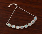 Natural Opal and Moissanite. women's Bolo Tennis Bracelet in Sterling silver, October , birthstone Bracelet, Party wear Bracelet, Finance gift Bracelet, Gemstone Bracelet, Tennis Bracelet. ==================================== PRODUCT DETAILS Product Type - Bracelet Bracelet type - Tennis Bracelet Gemstone setting - Opal Moissanite shape - Round Moissanite . size - 1.5mm Natural Opal and Moissanite color -Rainbow Natural Opal Shape-Pear Natural Opal Size-4mm Natural Opal & Moissanite Color- Rainbow , White Setting type - Prong ==================================== Benefits of Opal stone: Protective Stone Opal will shield you from negativity since it is a protective stone. It will create a barrier between you and others who try to inflict negative energies on you. 4. Improves Financial Situation Venus is associated with luxury and materialistic ambitions in addition to creativity. If Venus is placed in a weak position in your horoscope, you might have trouble managing your money. Opal jewelry has the power to improve your financial situation and social standing. 5. Improves Health Opal aids in treating liver, renal and hormonal diseases when it comes to its healing properties. It is a superb healing stone for treating psychological issues and sleep disturbances. Opal is regarded as a helpful stone for treating vision problems and other eye conditions. Benefits of Moissanite stone: It draws wealth : Venus, the planet that rules opulent lifestyles, is the ruler of moissanite stone. A strong Venus in your horoscope can help you achieve your goals. Wearing it draws a life of luxury and the fulfillment of all ambitions. The moissanite stone is a good investment for married life : Moissanite benefits those who experience marital difficulties or delays to achieve a happy marriage life, and solves issues like relationship, breakups, and frequent disruptions in marriages. Brings Prosperity : Wearing a moissanite is associated with advancement, wealth, and notoriety. It improves one's reputation and social standing in the community. Having quick and easy success is also beneficial. Boost creativity : People are strongly advised to use moissanite stone by Caratbazaar to enhance their imagination and creative thinking. Those who are creatively inclined or not can benefit from it.. =========================== Shipping Policy :---- • Shipping Thru FedEx, DHL Express, USPS & Other Courier Services. • We ship item(s) from India to Worldwide . • We also use USP Which take 4-5 days for delivery with 100 % insured and online tracking . • We provide you each item with individually packed secured with quality products to help ensure safety and undamaged delivery =================================== Regards by RG jewels