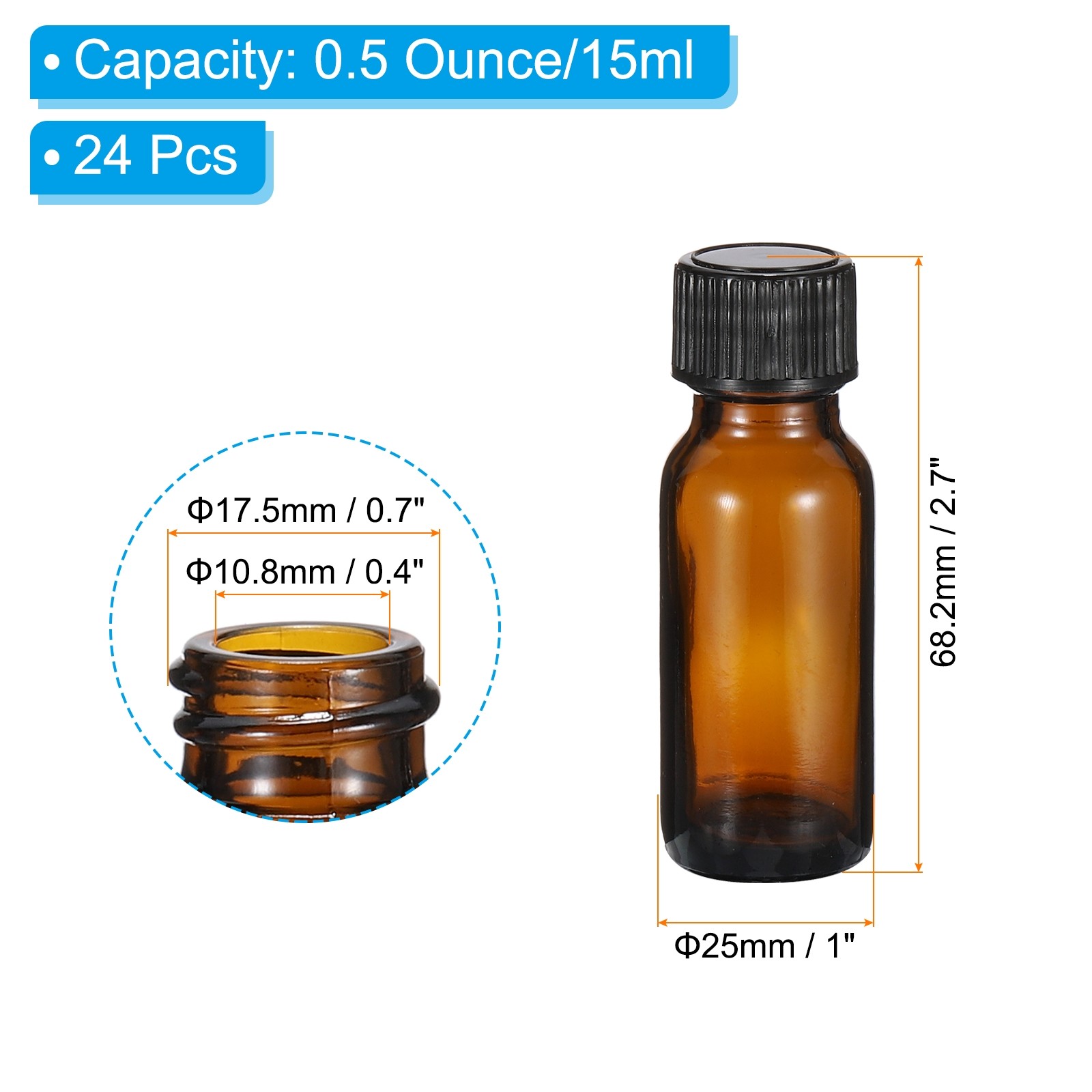 0.5oz(15ml) Glass Dispensing Bottle with Black Poly Cone Cap, 48Pcs, Amber