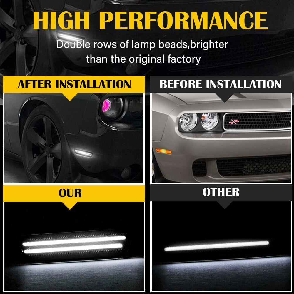 These smoked LED side markers are a perfect upgrade for any 2008-2014 Challenger. The fit is spot-on, just like OEM, and the white LEDs are bright and crisp. The smoked housing adds a sleek, aggressive look while the IP67 waterproof rating ensures durability. Easy to install, and the quality feels premium—definitely worth it for a clean, modern touch. No issues with visibility, and they match the car’s lines flawlessly. Highly recommend!