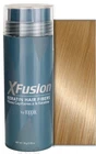 XFUSION HAIR FIBERS Black / Dark Brown / Medium Brown / Light Brown Gray / White / Auburn / Light Blonde / Medium Blonde Full Hair Instantly Achieve thicker, fuller-looking hair in just minutes with XFusion Keratin Fibers. This fiber-building product is a quick, efficient solution for people who want to do something about their thinning hair. Suitable for all-day wear in a variety of conditions, this fiber-building powder can withstand wind, rain, and perspiration. Choose from nine hair shades to find the perfect color match for your needs. Pick the shade closest to your natural hair color to cover gray roots or use XFusion's keratin building fibers in gray to simply fill in gray areas. This innovative cosmetic breakthrough provides both men and women with a safe, natural way to conceal hair loss. The product features organic fibers made of pure keratin protein, the same substance that makes up over 90% of human hair. You won't have to worry about itching or irritation when using XFusion. The fibers come from a wool source that's natural and nearly identical in structure to human hair. Each fiber has an innate yet gentle static charge and tiny ridges that mimic the scales in the hair's cuticle layer. These qualities allow the fibers to intertwine and blend seamlessly with all hair types, including Afro-textured and curly hair. They provide a natural-looking finish that doesn't clump, shift, or shed throughout the day. Each fiber clings to existing hairs, making hair appear thicker as the product fills out thin spots. PLEASE CHOOSE YOUR COLOR and QUANTITY