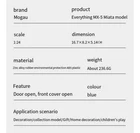 Item No.: 23009 Product Category: Sports Car Color: Mazda MX-5 Miata - Blue Can DIY: No Control Method: Force Control Multi-Function: No Applicable Age: Youth (15-35 Years Old) 3C Configuration Category: Toys for 14 Years Old and Older Material: Alloy Car Model Scale: 1:24 Do You Have Anime Characters? No Electric: No Is It a Static Model? Yes Customized Processing: No Is There a Shopping Guide Video Available? No Packaging Method: Color Box Category: Car Models