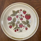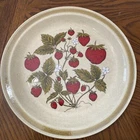 This Country Living stoneware serving plate is perfect for all occasions. The round plate features a colorful strawberry patch design and is made of durable, high-quality stoneware material. Measuring 12 inches in diameter, this plate is ideal for serving a variety of dishes and is sure to impress your guests. Crafted in Japan using art pottery production techniques, this plate is a unique addition to any collection. The plate is not vintage and is part of the Country Living product line. It comes as a set including one plate and is perfect for those who enjoy country-themed decor. Add this beautiful, multi-colored plate to your collection today! Tote b1
