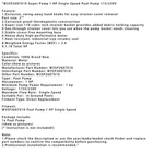 Product Description W3SP2607X10 Super Pump 1 HP Single Speed Pool Pump 115/230V Feature: 1.Exclusive, swing-away hand knobs for easy strainer cover removal Port size: 2" 2.Corrosion-proof thermoplastic construction 3.Super-size 110 cubic inch strainer basket provides added debris holding capacity 4.See-through strainer cover lets you see when the pump basket needs cleaning 5.Stable stress-free mounting base 6.Heavy-duty high-performance motor 7.Heat-resistant, industrial-size ceramic seal 8.Weighted Energy Factor (WEF) = 3.4 9.1.10 Total HP Specifics: Condition: 100% Brand New Material: Metal Color:show as pictures Manufacturer Part Number: W3SP2607X10 Interchange Part Number: W3SP2607X10 Other Part Number: W3SP2607X10 Type:Pool Pump Horsepower:1 HP Minimum Pump Power Requirement:1 hp Voltage:115V/230V Maximum Flow Rate:Single-Speed Suitable For:In Ground Pools Fitment Type: Direct Replacement Fitment: W3SP2607X10 Pool Pump 1 HP Single Speed Package Include: 1x Pool Pump (show as pictures) [* Instruction is not included!] Note: 1.Please check the description or use the year/make/model check finder and replace part numbers to confirm the compatibility before purchasing. 2.Professional installation is recommended. Shipping Returns Warranty Feedback About US ✔ Same business day free shipping within United States ✔ Delivery Time: 3-5 business days (continental U.S.). ✔ Order Processing: Ships within 3 business day (Mon-Fri, excludes holidays). ✔ Tracking Info: Provided automatically via eBay. ✔ All orders will be shipped through USPS First Class, UPS and Fedex depends on the weight of the items. ✔ Shipping notification will be emailed to you once package has been shipped Fast & Reliable Shipping – Your order is our priority! We package all items with care to ensure safe arrival! Tracking number emailed as soon as your order ships! 🌍 Ships from U.S. Warehouse – No long waits! 📦 Standard Shipping (Free): 3-5 business days (U.S. only). ULTRA-FAST SHIPPING – Because you shouldn't wait! We guarantee on-time delivery or your shipping fee back! 60-Day Hassle-Free Return Policy We offer 60-day free returns for your peace of mind. To ensure a smooth process, please contact us first before opening a return request—we'll gladly help resolve any issues! ⭐ Return Requirements: ✅ Unused & in original packaging ✅ Contact us immediately if the item is defective/damaged (photos/video required) ✅ Repack securely to prevent shipping damage ⚠️ Important Notes: • If returning due to change of mind, please select: "Changed mind" or "Didn't like item" Defective/damaged items? Contact us immediately with photos/video proof • Incorrect return reasons (e.g., falsely claiming "defective") may result in a refused refun d. ⭐ Return Process: • Contact us → We'll provide return instructions. • Ship the item back with tracking (recommended). • We inspect returns within 3-5 business days. Approved refunds are issued to your original payment method (processing time varies by bank). ⭐ Need Help? Message Us First! We're happy to offer alternative solutions, including replacements or discounts, before you proceed with a return. Your satisfaction is our top priority! No-Questions-Asked Warranty ⭐ HASSLE-FREE WARRANTY • 90-365 Day Coverage (varies by product - see listing details) • No Return Required for claims under $50 - we ship replacements immediately ✖ Exclusions: • Physical damage (drops/accidents) • Installation errors (YouTube tutorial links provided) • Modified/tuned vehicles Professional Installer Warranty ⭐ CERTIFIED INSTALLATION WARRANTY ✔ installed by licensed mechanics ✔ Free Technical Consultation before installation ⭐ Feedback & Satisfaction Policy Your 5-Star Reviews Help Us Grow! We're committed to your complete satisfaction. When you receive your item and are happy : ✅ Please consider leaving positive feedback about your experience ✅ Share what you loved (fast shipping? great packaging? accurate description?) Our Promise to You: ✔ 100% satisfaction guarantee - we stand behind our products ✔ Open, honest, and timely communication ✔ Always respond within 24 hours to any concerns Before Leaving Feedback: ⭐ Contact us first if anything is less than perfect ⭐ Allow us to make it right (replacement/refund/store credit) ⭐ Negative feedback won't solve issues - but we will! Important Notes: • Feedback about shipping carriers should go to their official channels • eBay cases opened without contacting us first void satisfaction guarantees We value your voice - let's work together for a great eBay experience! Our company [Amotopart] begins our business in ebay since 2006. We Mainly sell Bike, Sport goods, Home & Garden products, Computer Accessories, Consumer Electronics, Industrial and more to meet your needs. Our Advantage: [High Quality] - We focus on R&D, cooperating with professional manufacturers, ensuring that we provide our customers with top quality and innovative products. [Great Price] - We try our best to offer you the best price in all markets. [Excellent Customer Service] - We try our best to service our customers all time, professionally and sincerely solve your problem and reply quickly within 24 hours(excluding weekends). [International Warehouse] - We have many warehouses around the world, such as in USA, UK, AU and so on, ensuring the fastest shipping for your orders. We value honest and fair business with our customers. We welcome you to contact us and look forward to working with you! Shipping ✔ Same business day free shipping within United States ✔ Delivery Time: 3-5 business days (continental U.S.). ✔ Order Processing: Ships within 3 business day (Mon-Fri, excludes holidays). ✔ Tracking Info: Provided automatically via eBay. ✔ All orders will be shipped through USPS First Class, UPS and Fedex depends on the weight of the items. ✔ Shipping notification will be emailed to you once package has b