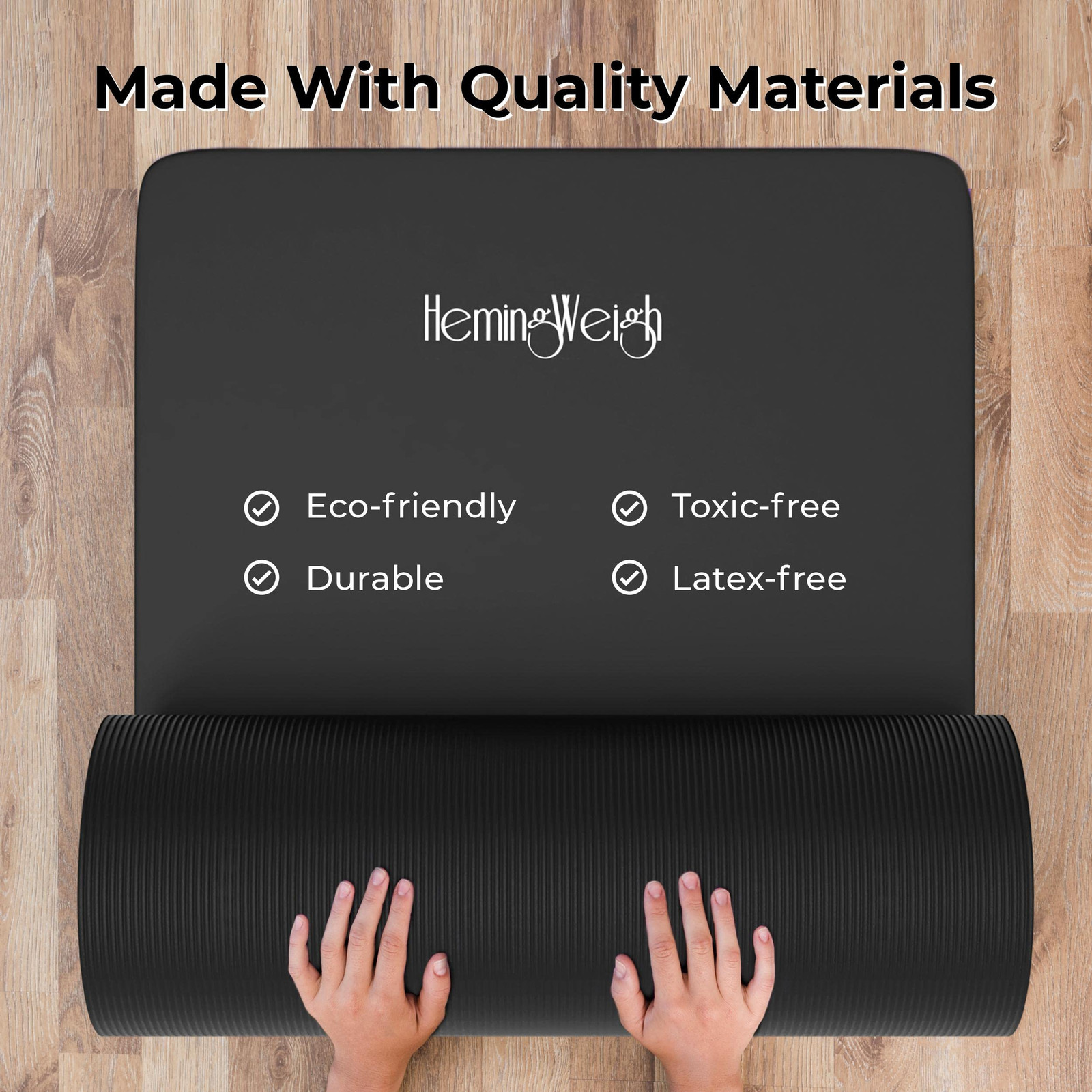 All purpose 70" long 23" wide mat, made with high density foam, 1" thick anti-tear premium foam material Thoroughly engineered to support all types of yoga routines; Non slip feature allows you to maintain perfect balance; Prevents sprains and fractures due to falling; Anti tear allows durability for Vinsaya and other active yoga forms; Will last for a very long time Travel yoga mat; Bring to the studio or stay at home; The easy strapping system and lightweight feature allows less time and effort to roll and carry with you wherever you want to go; Enjoy the serenity of indoor yoga or reconnect with nature through outdoor yoga; Ideal for any setting Long enough for stretching; Wide enough for movement; Great for Ashtanga yoga and even Hatha yoga; No more yoga poses off the mat Eco friendly and easy to clean; Made with soft, flexible, and safe NBR material to keep your health at ease; The smart choice for nature caring yogis like yourself