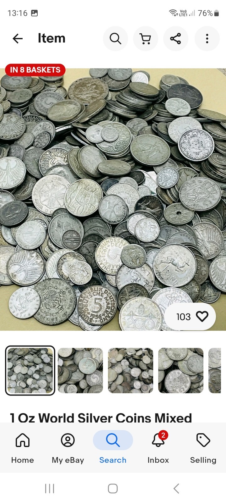 The product is a selection of 1 oz of silver coins from various countries around the world, including the United Kingdom. These highly collectible coins are ideal for investment purposes due to their silver content. With a mix of designs and origins, these coins offer a diverse and valuable addition to any collection or investment portfolio. !!! 1 FULL TROY OUNCE OF MIXED GRADE AND DATE SILVER CONTENT COINS FROM AROUND THE WORLD !!! !!! PLEASE BE AWARE THAT YOU DO NOT RECEIVE ALL COINS IN PICTURES !!! !!! REAL SILVER COINS !!! !!! Many rare Coins !!! !!! 31G + OF COINS OR 1 FULL TROY OUNCE OF COINS IN TOTAL !!! !!! GREAT INVESTMENT OPPORTUNITY !!! !!! FEEL FREE TO FOLLOW US AND CHECK OUT OUR OTHER REAL TREASURE AS WE ARE NOW LISTING FROM AS LITTLE AS 1P START !!! AND.... .........!!! GOODLUCK !!!