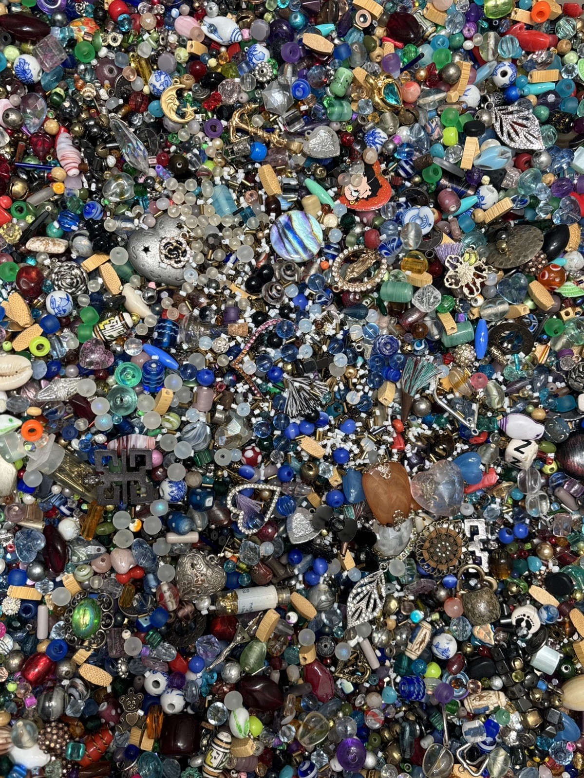 This product is a 1 pound assortment of beads in various colors, all made of metal with an iridescent finish. These beads are perfect for making jewelry and crafts, and also include charms for added creativity and decoration. With a wide range of colors and a metallic finish, these beads provide endless possibilities for creating unique and stylish pieces.