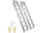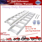 1 Pack 8810 Lbs Capacity Heavy-Duty Aluminum Ramps Hook Attaching End Universal Description Lightweight but Powerful: Made of premium aluminum alloy and tested for security, it can support up to 8810 LBS Non-Slip and Tip-Proof: The rungs design increases the friction of the aluminum ramps. The extension plate and adjustable safety straps keep your ramps firmly in place, there's no risk of tipping or sliding Sturdy Ramp: 2-inch thick main beam is sturdy enough to withstand heavy loads without bending or sagging Secure Loading & Unloading: The car trailer ramps feature a hook-shaped top that attaches well to the rear of the trailer; Raised slope texture and feet achieve non-slip functionality Portable Design: The hollow stair-step design makes our truck ramp loading lightweight and easy to move around Brand Unbranded MPN Does not apply Color Aluminum Color Product Dimensions 73.23"L x 15.75"W x 9.45"H Load Capacity 8810 pound Is Foldable No UPC 198290182275 Item Weight 63.5 pounds Apply For Motorcycles, Tractors, ATVs/UTVs, Trucks, Lawn Mowers Special feature With Top Hook Attaching End