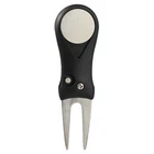 Features: Ball mark, magnet adsorption, easy to take Repair fork spring set, it is convenient to open and close Small volume, light weight, easy to carry Purpose: repair the turf and mark the position of the ball Specifications: Product name: golf repair fork Material: ABS + zinc alloy Color: black Size: about 7cm/2.76in(fold), 11cm/4.33in(unfold; mark iron ring: 2.5cm/0.98in Weight: 42g Packaging: yellow box packing Package include: 1 * Golf Repair Fork