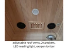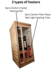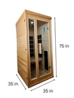Dimension : length 35 , width 35 , height 75 inches (1 person size) Heaters : 5pcs of Carbon Crystal Heating Pad (left, right, back side, under bench, floor) 2pcs of Carbon Fiber Glass (Red Light Heating Tube) Material : hemlock Plug :110V USA plug 1. Control Panel(FM, MP3, USB, BLUETOOTH) 2. Double Speaker 3. Oxygen Ionizer 4. Wooden Handle 5. LED Reading Light 6. Foot Heater 7. Full spectrum heater at side 8. Ventilation window 9. 8mm transparent tempered glass Delivery can be discussed for an additional fee