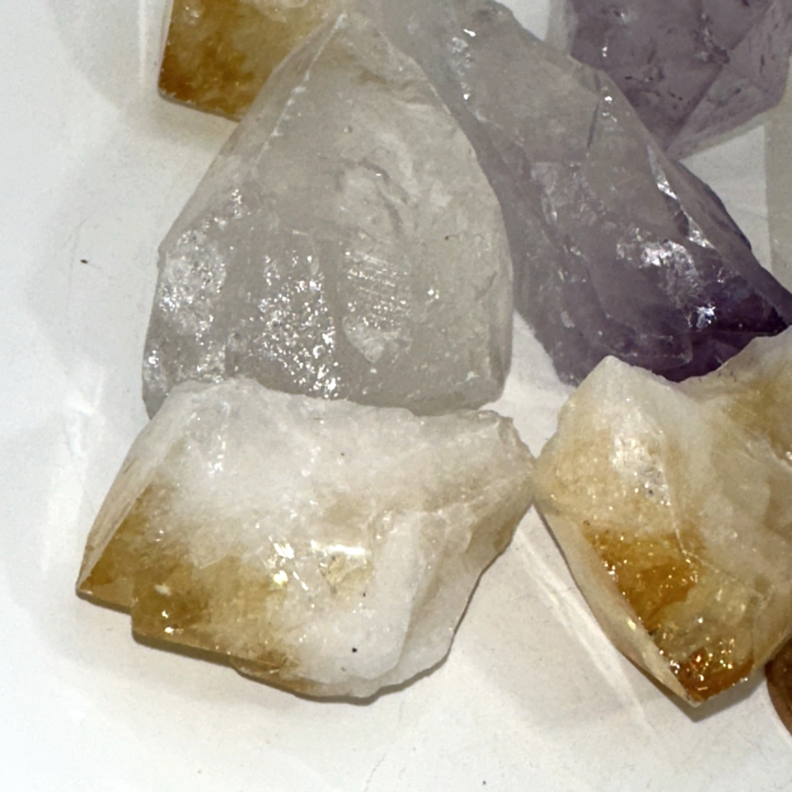SHIPPING COST: $6.95 ADDITIONAL LOTS SHIP FREE!!! 1-lb. Bulk Amethyst, Citrine, Quartz Large Crystal Points Weight: 1 lbs. Size: 2" to 3" (approximate) Origin: Brazil Elevate your collection with our Amethyst, Citrine, and Quartz Crystal Point Mix, you will receive the exact stones in the photos. offered in 1-pound lots, these stones are perfect for crystal enthusiasts. Ideal for crystal decor, or metaphysical use, this Amethyst, Citrine, Quartz Large Crystal Points Lot offers beauty and versatility. Shop now and stock up on these stunning, high-quality Crystals! I do accept returns. If you are not happy with your purchase, please contact me first so i can make it right. Thanks in advance for your purchase, and please leave positive feedback so i can continue to bring you awesome stuff at a fair price.