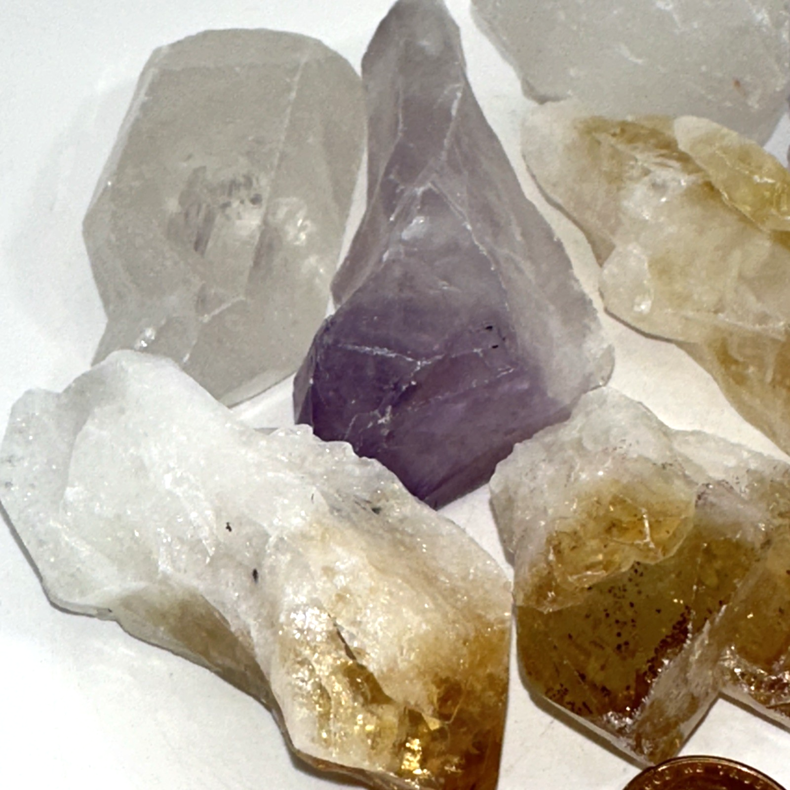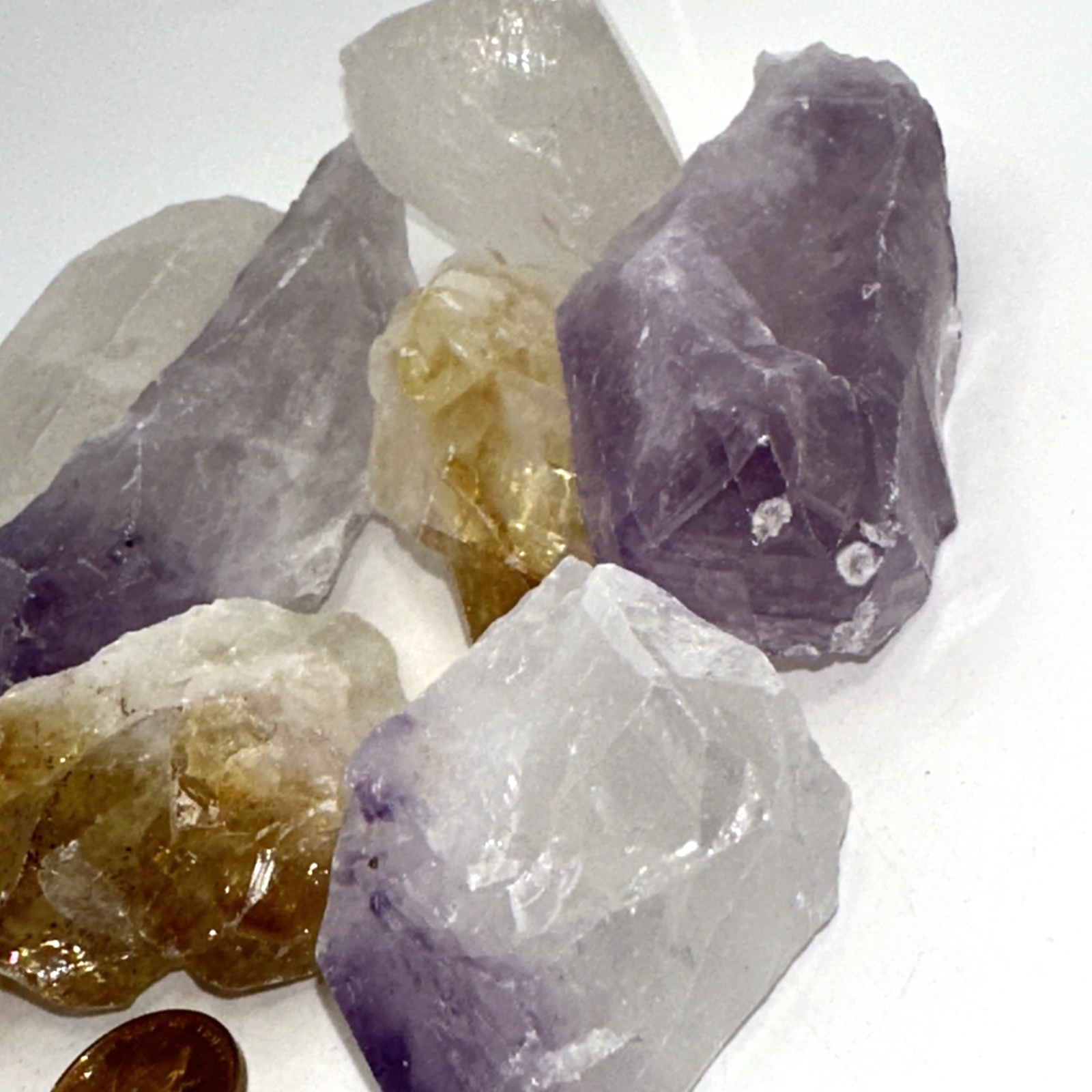SHIPPING COST: $6.95 ADDITIONAL LOTS SHIP FREE!!! 1-lb. Bulk Amethyst, Citrine, Quartz Large Crystal Points Weight: 1 lbs. Size: 2" to 3" (approximate) Origin: Brazil Elevate your collection with our Amethyst, Citrine, and Quartz Crystal Point Mix, you will receive the exact stones in the photos. offered in 1-pound lots, these stones are perfect for crystal enthusiasts. Ideal for crystal decor, or metaphysical use, this Amethyst, Citrine, Quartz Large Crystal Points Lot offers beauty and versatility. Shop now and stock up on these stunning, high-quality Crystals! I do accept returns. If you are not happy with your purchase, please contact me first so i can make it right. Thanks in advance for your purchase, and please leave positive feedback so i can continue to bring you awesome stuff at a fair price.