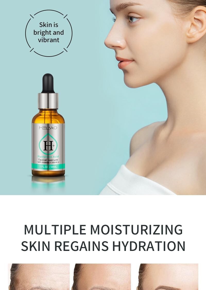 Hyaluronic Acid Serum for Face with Vitamin C, Ceramide - Smoothing, Firming and Moisturizing, Face Hydrating Serum for Dry and Sensitive Skin, Dermatologist-Tested - 1 Fl Oz 【Trusted】Show off your radiant skin with our Hyaluronic Acid Face Serum. Enjoy irresistibly soft and smooth results as you lock in essential moisture and plump up your skin. Say hello to a brighter, rejuvenated complexion. 【Pure Ingredients】Our hyaluronic Facial Serum combines vitamin C and centella to help even out skin tone, neutralize free radicals, and boost collagen to reduce fine lines, and wrinkles. 【Directions】Apply 3-5 drops of facial serum to cleansed skin; first-time users of hyaluronic serum for the face should begin by applying only 2-3 times per week; avoid eye contact and always patch test facial skin care products 24 hours before use; use externally only. Apply daily 【Safe Protection】Dermatologist tested in the USA and cruelty free with no unnecessary additives or fragrances. 【Guarantee】If for any reason you decide this product isn't right for your skin, we're here to help.