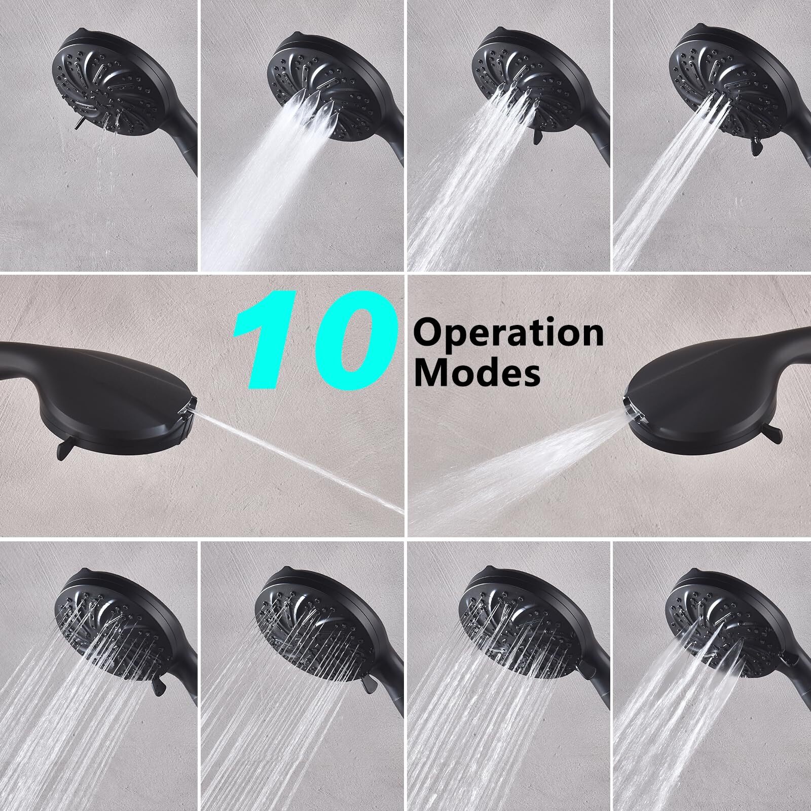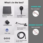 【10in Square Metal Shower Head】: Product upgrade. Guaranteed to not leak under high water pressure, the rain shower head has a large coverage area and can easily cover your entire body, allowing you to enjoy a gentle, refreshing rain shower feeling every time you shower. 【10 Settings Handheld Shower Head】: Easily adjustable, one-touch control of water outlet mode to suit different needs, 71-inch long hose can easily flush every corner of the bathroom. Handheld built-in replaceable filter element can further purify water quality. 【Easy to Adjust Water Flow】: The diverter can easily convert water from the rain shower head and handheld shower head, and the water flow is strong. The metal shower head and handheld shower head can be used together. (Water pressure is halved). 【12.99in Adjustable Shower Extension Arm】: The metal shower head has a larger height and angle adjustment range, and you can easily find the right height and angle. It is very stable after fixing. 【Easy Installation and After-sales Service】: Simple operation, everything you need for installation is included in the package. Follow the instructions and you can easily complete the installation without a plumber. If you have any questions, please feel free to email us and we will respond to you within 24 hours!