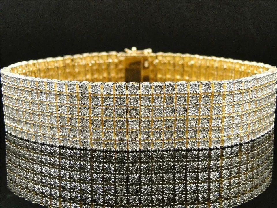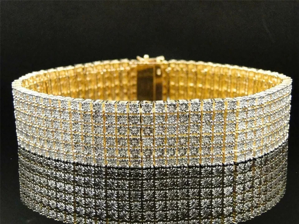 Blule Star_Manufacturer We Offer Customization Want to add a personal touch to this piece? Contact us and we will create one just for you. Customization We Offer : This 10 Ct Round Cut Simulated Diamond Men's Tennis Bracelet is a stunning piece of jewelry crafted with 14k Yellow Gold Plated Sterling Silver. The bracelet features a push lock closure and a classic tennis style design, making it a perfect accessory for various occasions such as engagements, weddings, anniversaries, and birthdays. The main stone is a beautiful simulated diamond with a round shape and a width of 2.5mm, set in a prong setting. The bracelet is adjustable, nickel-free, and engraved with a charm type snap closure for a secure fit. This exquisite piece is handmade in India and comes with a seller warranty. Shipping We will ship all items within 5-7 business days of purchase during the work week (M-F) excluding holidays. If you order on Friday, your order will be shipped the following business day. Tracking will be provided when it becomes available. Domestic delivery may take up to 1 week. It all depends on the local office. Once the order leaves our location, we have no control over delivery times. We will only ship to a corresponding Govt Z.P.O.Dept Verified Address. Please make sure your address is current and correct. If the information does not match, your order may be cancelled. Buyers are responsible for all customs, duties and taxes for your respective countries. Delivery times for International Shipping will vary. California Buyers Pay 9.0% Tax on all orders case auto open by eBay. Terms of Sale Returns are accepted. Buyer must contact us within 30 days after the item is received. Item must be returned in unworn and resalable condition. We will only issue a refund for the purchase price, excluding any shipping fees. If we are at fault, we will provide a full refund. Buyer is responsible for all return shipping costs. Feedback Please do not leave a negative feedback as a way to communicate. Any rating given to a seller can neither be changed nor modified. So better communicate for faster resolution to any disputes. If you have any concerns regarding your purchase, please contact us via eBay Message, we assure you that a satisfactory resolution will be reached. Please help us maintain a 5 Star DSR rating in all 4 rating categories, if you feel otherwise, please let us know how we can score a perfect rating from you before you rate us. Thank you Visit Again
