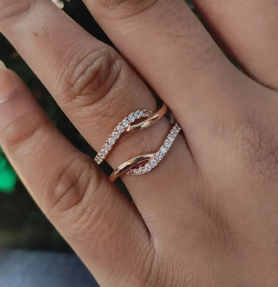 $ 120.9214k Yellow Gold Finish 2Ct Created Diamond Ring Guard Wrap Band Enhancer Jacket