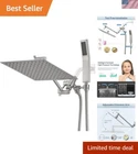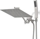 10 Inch All Metal Rain Shower Head With Handheld, High Pressure Dual Shower Head Combo With Adjustable Extension Arm, 70" Flexible Hose, 3-Way Diverter - Height/Angle AdjustableBrushed Nickel 【 Service & 15- satisfaction】Free is available. Any problems with the quality, pls contact me freely and we will respond within 6 hours. (Note: To prevent leakage due to not being tightened, pls tighten it with a wrench tool. After the installation, pls adjust the Water Flow Regulator to the MAX position). 【All Metal Design & Easy Installation】 Shower Head Combo is made of all metal - brass and 304# stainless steel for the three times rust resistance and longevity than ABS. Ultra-thin rain shower head design and advanced air booster technology offer a superior rain spray shower experience even at low water flow and pressure. Install in minutes with just three hand-tighten connections, no need to call a plumber. 【Upgrade 10-Inch Large Rainfall Shower Head Combo】Large square rain shower head with handheld spray which provides a waterfall full-body coverage. More than 120 closely grouped self-clean silicone nozzles prevent lime and hard water build up. Come with an extra filter and washer to ensure a reliable leak-proof connection. 【All Metal 3-Way Diverter & Humanized Adjustable Extension Arm】Metal Diverter With Built-In Bracket - 'S PATENTED DESIGN. Made of solid brass, the 11-inch extension shower arm has stronger corrosion resistance than others (zinc alloy). No worry about breaking or leaking. 360° rotation angle and height-adjustable to meet different angle position shower needs. Suitable for both adults, kids or babies. 【Packing List】 10" Square Rain shower head, '' handheld shower head, 11” extension shower arm, 3-way diverter, 70'' stainless steel shower hose, water flow regulator, Teflon tapes, backup filters washers and manual instruction. If there is any omission, please feel free to contact me to reissue.