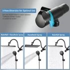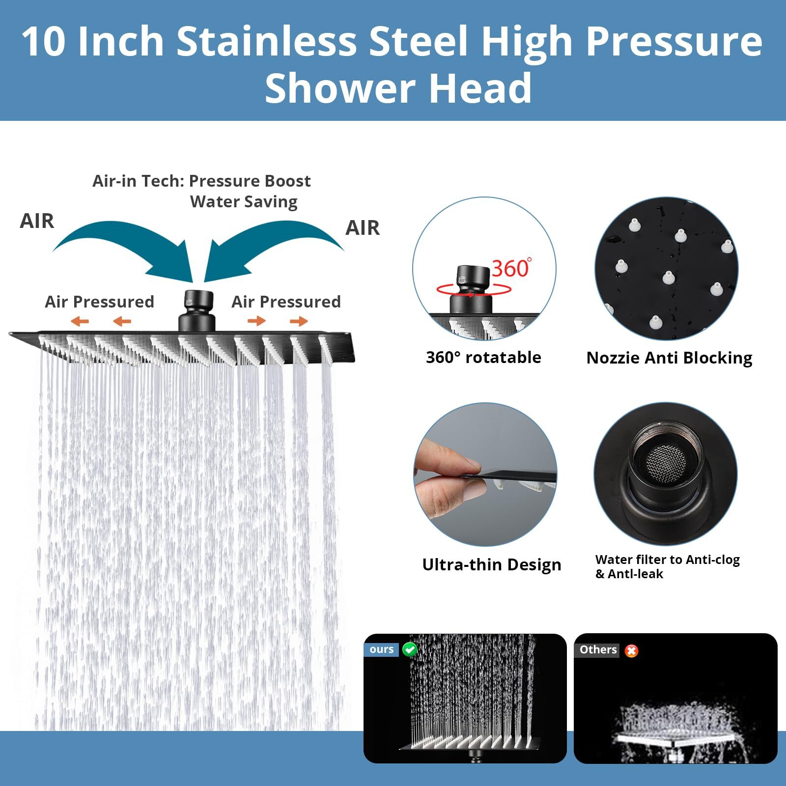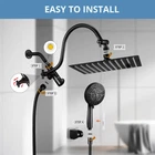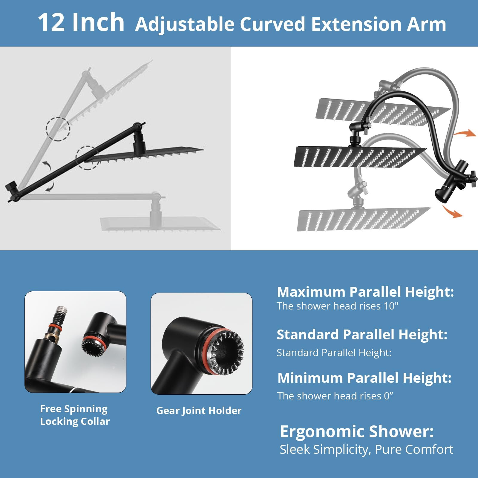 【8 Settings & 2 power wash mode】Transform your shower experience with our Hydro Shower Jet Head, boasting Drip Water Saving Mode. Delight in Rain, Massage, Misty, and Bubble combinations, while the refined dual Jet modes offer endless possibilities. Effortlessly cleanse stubborn bathroom stains and make pet bathing simpler than ever. Embrace eco-consciousness and luxury with this versatile, high-performance innovation. 【 10'' High-pressure Rainfall Shower Head】Elevate your shower experience with our premium rain shower head with handheld, among the finest luxury shower heads. Crafted from stainless steel, it offers superior rust resistance, durability, and an extended lifespan. With an ultra-thin design and air-in technology, enjoy 121 spray jets for a gentle, rain-like flow. Customize your angle with the brass swivel ball connector, immersing yourself in a luxurious, hotel-style bath at home. 【12'' Upgrade Adjustable Shower Extension Arm】Enhance your shower with our 12" Adjustable Arm, tailored for the Black Shower Head and Handle Set and Adjustable Height Extender. Its height adjustability offers personalized luxury, while the curved design maintains showerhead alignment for a constant water flow. The sturdy curve enhances both aesthetics and arm strength, providing exceptional stability. Elevate your routine with this stable, adaptable masterpiece. 【Filtered Handheld Shower Head】Enhance your daily cleanse with our double shower head setup, tailored for hard water conditions. The handheld unit boasts a premium filter to eliminate impurities,The handheld unit integrates a high-performance filter, purifying water to nourish your skin and hair, while the fixed counterpart provides a classic waterfall effect. 【Upgraded 3-Way Diverter Valve】Elevate your shower experience with our robust brass diverter, seamlessly switching between single shower head/handheld or dual setups. Its ingenious rotatable connector adeptly addresses misaligned handheld diverters, maintaining hose integrity and thwarting shower tangles. Enhance your bathing with unmatched functionality and ease.