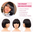 Short Black Human Hair Bob Wigs With Bangs 10 Inch Light Yaki Straight Realistic Scalp Glueless Non Lace Front Wig For Women Blunt Cut Bob Wigs 180% Density (Yaki bob 1B#, 8INCH) Product Details Color: Yaki bob 1B# Size: 8 Inch Brand: NovaLocks UPC: 765133705917 EAN: 0765133705917 MPN: Does not apply Color: Yaki bob 1B# Material: Human Hair Hair Type: Curly Style: Afro Special Feature: Glueless Package Dimensions : 8.27 x 8.15 x 2.32 inches; 6.35 ounces UPC : Manufacturer : YZSZSF Country of Origin : China Best Sellers Rank: #691,514 in Beauty & Personal Care (See Top 100 in Beauty & Personal Care) #18,592 in Hair Replacement Wigs #18,592 in Hair Replacement Wigs Customer Reviews: 3.3 3.3 out of 5 stars 26 ratings Wig Material: Selected Human Hair,Glueless Short Bob Wig with Bangs,Machine Made None Lace Front Human Hair Wig,More Convenient,You Can do Sports Crazily without Worries.Let You Always Keep Perfect In Anytime and Anywhere Human Hair Wig Quality: :100% Unprocessed Human Hair Straight.No Mixed,No Synthetic,No Chemical,No Lices,No Smell, Soft,Healthy and Natural,Can be Curled;150% Density Glueless Wig for Black Women Cap Size: Wigs Human Hair Cap Size: Medium Cap Size 22-22.5inch (Average Cap Size) with Adjustable Straps,Suitable for Different Head Sizes ;You Can Wear The Wig Comfortably&Easily; 8-14 Inch Available;The Hair Could be Cut According to Your Own Need Advantage: Natural & Soft, No Weird Smell,True to Length,No Glue Needed,Beginnner Friendly ,Perfect Choices for Occassions Like Parties,Birthday,Travel,Celebration,Graduation,Wedding etc.