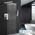 Includes:10" square fixed shower head, hand-held shower head with Sprayer , shower arm wand, shower hose, shower holder and Shower Faucet Rough-in Valve Body , material ensures resistant and protect your skin from pollution,stainless steel offers nice-looking,resistance corrision and resistant cUPC Certified & Anti-Scald Cartridge: advanced pressure balance ceramic disc cartridge with cUPC certification can effectively protect you from scalding injury caused by sudden changes in hot or cold water pressure, maintaining consistent water temperature. If inlet water temperature changes seasonally, please following included instructions to readjust the temperature limit stop Air Pressurization Technology: The 10 inches shower head with adoption of innovative air injection technology, mixes water with air to increase the water pressure to 50%, and simulates the natural raining; save up to 30% on water at the same time, which is a perfect solution for areas with low water pressure 2 Functions: 2-in-1 diverter + hot/cold control.Overhead Rainfall Shower and Handheld Spray.Diverter switches between top shower and hand spray,they are working separately. This shower system is American standard NPT 1/2 connector, Contain Trim and rough-in valve body High Pressure Shower: Thanks to the ultra-thin design of the rain shower, even in a low water pressure environment, when the water flows out after being squeezed through the ultra-small space, it can also achieve a high water pressure rain shower experience Product Description Advantages of HGN Rainfall Shower Faucet Two Functions Two functions shower is in right now because this gives you the convenience of having one rotating shower head and one handheld which you can use for focusing on certain parts of your body. Gone are the days when you only can choose one. This is the shower system that has two functions for your convenience. Wide Coverage The 10-inch rainfall shower head has a very wide face with many holes. That is because the shower head is designed to have a wide coverage. This adds to the overall experience of being close to taking a bath in the rain. You will have your entire body soaked not leaving any part out of the water. Calming Feel For the more traditional showers, you might have felt pain when the jets were spraying too strong. Well, with rainfall shower head you won’t have to feel that anymore. Rainfall shower head can spray out water the way the sky lets out rain drops. You will feel every drop of water trickle on you calmly making you more relaxed when you take a shower. Shower Mixer High Quality Brass Material Doesn’t Pollute Water which will Provide a Better Bathing Environment for You and Protect Your Skin. Hot and Cold Water Easily adjust the shower way through turn the switch (Rainfall or Handheld Shower). The sleek single lever allows for effortless control of the water temperature and flow volume. Pressure Balance Spool Anti-Scale Design The cartridge is pressure balance valve, which monitor the water pressure stable and NO sudden temperature change during use. Don't need to worry about the scale with pressure balance valve. Shower Head 10-INCH HIGH PRESSURE SQUARE RAIN SHOWER HEAD Effortlessly provides superior water pressure. This rain shower head optimal performance even in low water pressure installations. Keep the flow rate 2.5 GPM which will save 30% water. Made with highest quality 304 stainless steel material. Handheld Shower Head Effortlessly provides powerful water pressure. optimal performance even in low water pressure. Shower Arm Made of 304 stainless steel. Can bear 20 pounds