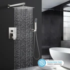Includes:10" square fixed shower head, hand-held shower head with Sprayer , shower arm wand, shower hose, shower holder and Shower Faucet Rough-in Valve Body , material ensures resistant and protect your skin from pollution,stainless steel offers nice-looking,resistance corrision and resistant cUPC Certified & Anti-Scald Cartridge: advanced pressure balance ceramic disc cartridge with cUPC certification can effectively protect you from scalding injury caused by sudden changes in hot or cold water pressure, maintaining consistent water temperature. If inlet water temperature changes seasonally, please following included instructions to readjust the temperature limit stop Air Pressurization Technology: The 10 inches shower head with adoption of innovative air injection technology, mixes water with air to increase the water pressure to 50%, and simulates the natural raining; save up to 30% on water at the same time, which is a perfect solution for areas with low water pressure 2 Functions: 2-in-1 diverter + hot/cold control.Overhead Rainfall Shower and Handheld Spray.Diverter switches between top shower and hand spray,they are working separately. This shower system is American standard NPT 1/2 connector, Contain Trim and rough-in valve body High Pressure Shower: Thanks to the ultra-thin design of the rain shower, even in a low water pressure environment, when the water flows out after being squeezed through the ultra-small space, it can also achieve a high water pressure rain shower experience