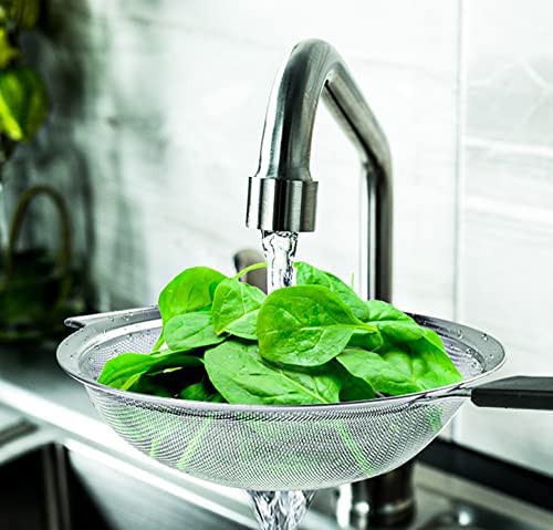 10 inch Metal strainer - Our high grade stainless steel food strainer won`t bend or rust. Perfect Kitchen Strainer - This fine mesh sieve will help you in handling all your straining, sieving and sifting tasks. So straining large quantity of quinoa, rice, fruits, dry baby cereals, tomato sauce, etc. is not a problem anymore! Strainer with handle - Our fine strainer features a heat resistant thermoplastic rubber handle that allows for an improved grip even if the hands are wet and protection to your hands from heat. The wide ear hook features come in handy for kitchen arrangement SAFETY FIRST - We provide you burr-free mesh strainer for kitchen that will take care of your hands by offering you a scratch-free experience. So washing our sieve fine mesh is not a problem. Lifetime warranty - gives lifetime warranty for this strainer.We believe in 100% customer satisfaction and quality is our priority. In case of any defect in the product, you may contact us and get your replacement