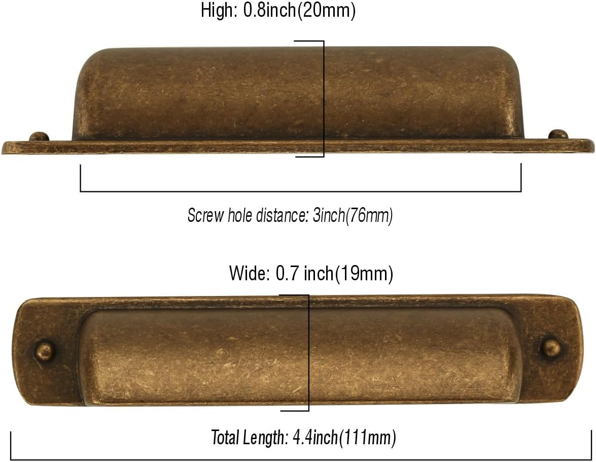 Asidrama brand assurance: We take your user experience very seriously and we are so confident in the quality of our products that we will replace them if there is any quality problem. Asidrama cabinet hardware:10 Pack 3 Inch Antique Brass Cabinet Handles.Each handle is individually securely packaged to prevent bumps and scratches. Made of alloy with a Antique Brass finish, the Asidrama pull is a heavy duty cabinet pull that is strong. Standard screw spacing for easy installation and replacement. Measurement: Hole Centers(CC):3 inch(76MM); Overall Length:4.4inch(111MM);Width:0.7inch(19MM);Projection:0.8inch(20MM); Please check the Size of handles you require carefully before purchasing. Wide range of application: Asidrama furniture pulls are ideal for cabinets, closets, cupboards, drawers, dressers, doors and wardrobes. You can upgrade your home with your DIY Asidrama 10 Pack 3 Inch(76mm) Antique Brass Kitchen Cabinet Handles, Cabinet Cup Pulls Kitchen Cabinet Hardware for Cupboard Drawer Pulls