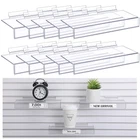Features: The clear shelves for wall are suitable for home, bedroom, living room, kitchen, game room, , glasses, keys and other items, also nice for commercial use, for shoe stores, boutiques and retailers. The retail display wall shelves can make full use of wasted wall space and turning the wall into the nice storage area for items, allowing you to quickly insert them into plank walls to display your shoes or dolls without taking up much floor space. Specifications: Material: acrylic Color: clear Size: about 4 x 10 inches/ 10.2 x 25.4 cm Package includes: 10 x Clear acrylic slatwall shelves with sign holder Notes: Manual measurement, please allow slight errors on size. The color may exist a slight difference due to different screen displays. What You Will Get: you will get 10 pieces clear display shelves, enough quantity for your daily use and ; You can also share with families and friends to help them organize their things Size Information: the clear wall shelves are about 4 x 10 inches/ 10.2 x 25.4 cm, which is lightweight and portable to carry, with good weight bearing, can be applied for placing small figures, crafts, picture frames and so on Quality Material: the clear retail display shelves are made of quality acrylic material, which is not easy to rust, fade or corrode; The corners are polished and smooth, strong and sturdy; And there are also card slots on the edges for 1¼" x 10" card or signage slots Easy to Install: the clear slatwall shelves are wall mounted design, which is helpful for making full use of your wasted wall space and turning the wall into the nice storage area for your items, allowing you to quickly insert them into plank wall to display your shoes, dolls, or other small objects without taking up much floor space, fitting into standard slatted wall panels Wide Applications: the acrylic shelves for display are suitable for home, bedroom, living room, kitchen, game room, stereo, , glasses, keys and other items, etc., also nice for commercial use, providing a nice way for shoe stores, boutiques and retailers to display their wares