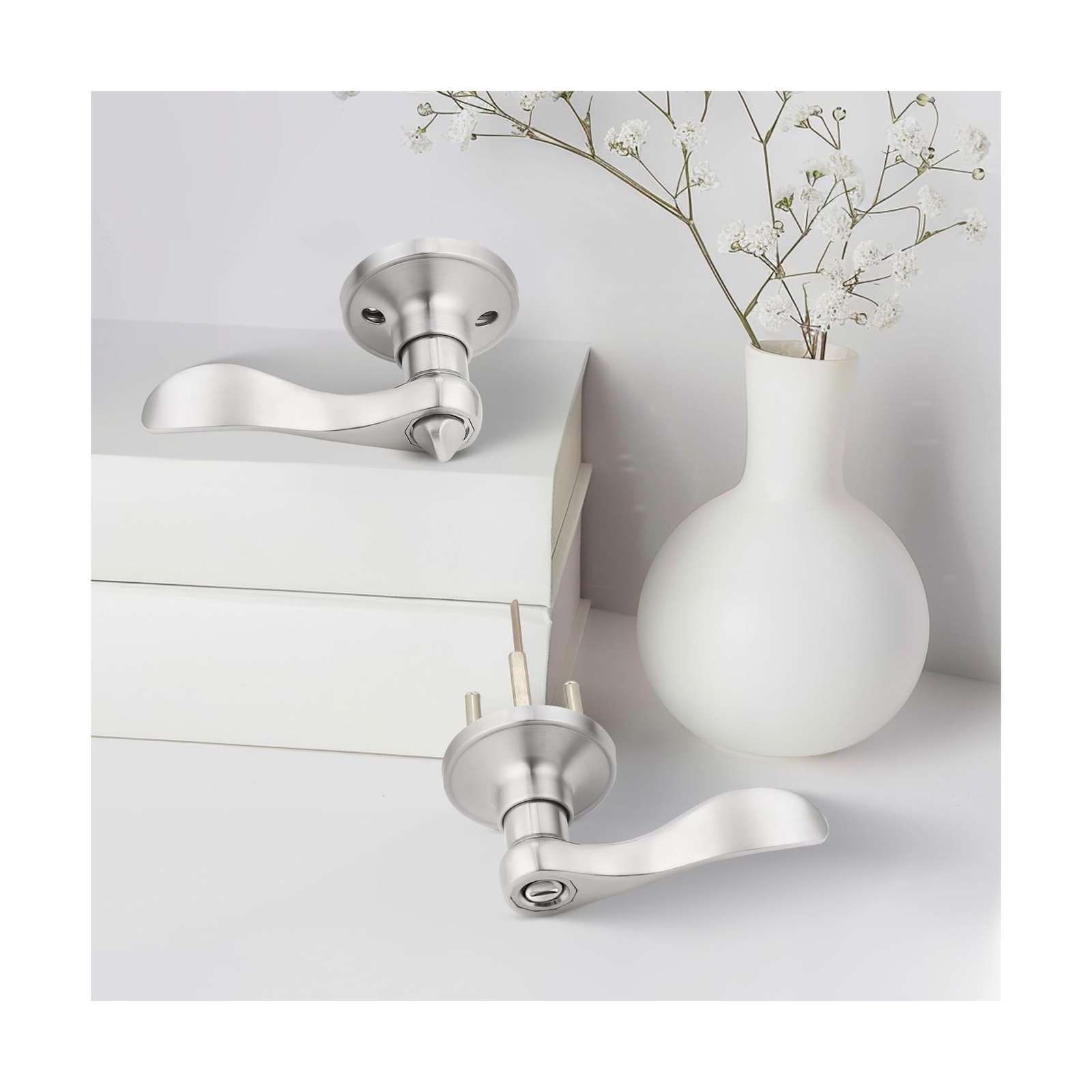 10 Pack Privacy Door Lever with Lock, Keyless Reversible Interior Door Handle for Right/Left Handed Doors, Satin Nickel Wave Style Lock Set for Bedroom, Bathroom Description Upgrade your doors with our Keyless Locking Privacy Door Lever. Designed for optimal privacy in bathrooms, bedrooms, and dressing rooms, the interior thumb-turn knob allows for quick locking, ensuring your personal space remains secluded. For added convenience, the exterior emergency release lock enables secure unlocking with a simple coin or flat object.Upgrade your doors with our Keyless Locking Privacy Door Lever, a reliable, stylish, and easy-to-install solution that provides optimal privacy and convenience. Transform your space with this high-quality door lever backed by our assurance of quality.PRODUCT INFORMATION: Material: Zinc Alloy Rosette Diameter: 2-3/5""(65mm) Lever Length: 4.84""(123mm) Adjustable latch: 2-3/8"" or 2-3/4""(60 or 70 mm) Door Thickness: 1-3/8"" to 1-3/4""(35 to 45mm) Hole for Latch: 1"" diameter Hole for Cylinder: 2-1/8"" diameterWHAT’S IN THE BOX:They are packaged by the individual package. Each Package Include--Door lever1--Adjustable latch1-- Screws7--Strike Plate2--Plastic box2--Installation instructionNOTICE:➊ The square plate on the latch is non-removable.➋ Please feel free to contact us, if there is missing parts, we will arrange the replacement for you ASAP. Replacement or Refund for any quality problem. Features: Keyless LockingThe interior thumb-turn knob of privacy door lever allows for quick and effortless locking without the need for keys, which enhances convenience in spaces such as bathrooms, bedrooms, and dressing rooms. A simple coin or flat object can be used to turn the emergency release lock on the outside, allowing for secure unlocking. Quality EnsuredEvery aspect of the interior door lock hardware set has been carefully designed and conformed with ANSI Grade 3 Security. With over 250,000 testing cycles completed, the hardware has been subjected to repetitive use and stress, withstanding long-term use without compromising its functionality or structural integrity. Heavy DutyThe keyless door lever is crafted using durable and corrosion-resistant zinc alloy, ensures that the lever can withstand rigorous daily use without compromising its functionality. The lever set features a electroplating matte black finish, which enhances its resistance to scratches and wear. ReversibleWith its universal compatibility, the contemporary square door knob simplifies the installation process and provides a seamless solution for any door orientation. Whether you have a left-handed door or a right-handed one, you can effortlessly adjust the privacy door handle to ensure optimal functionality and ease of use. Flexible InstallationAdjustable latch 2-3/8" or 2-3/4"(60mm-70mm); Fits standard door thickness: 1-3/8"to 1-3/4"(35mm- 45mm); Installs incredibly easily with a screwdriver in just a few minutes, making it possible for anyone to DIY without hiring professional door fitters. Product Details: Material: Metal Brand: Brotima Color: Satin Nickel Product Dimensions: 1"L x 1"W Manufacturer: Brotima Manufacturer: Brotima Item Weight: 17.53 pounds Product Dimensions: 1 x 1 x 1 inches Color: Satin Nickel Finish: Stainless Steel Material: Metal Item Package Quantity: 10 Batteries Required?: No Date First Available: October 31, 2024 Shipping Most orders will be shipped within 1 business days once we receive your payment. Except on weekend or public holidays. A shipping notification will be emailed to you once your order has been shipped. International shipping via eBay Global Shipping Program. No shipping to AK, HI, PR, APO/FPO, US Protectorates and PO Box. Payment We Accept Payment Via PayPal and All Major Credit Cards. Return We stand behind our products. Items can be returned for exchange or full refund within 30 days from the date you receive your merchandise. Return shipping is the responsibility of buyer unless the return is a result of our mistake (i.e., your receive the wrong item). We will pay for shipping replacement back to you if an exchange of the same product is requested. Contact us If you have any questions please contact us. We respond within 1 business day or less.
