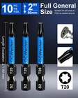 10 Pack T20 Torx Bit 2 Inch Professional-Grade T 20 Torx Screwdriver Bits Tool Size:T20 Torx Bit 10-PCS 2 Inch Item Length: 2 Inches Material: S2 Alloy Steel Drive System: Torx Star Finish Type: Manganese Phosphate T20 STANDARD STAR TORX BIT This 10-Pack of T20 torx bit is 2 inch long, with bit holder. Each drill bit is clearly labeled with its size UPGRADED INDUSTRIAL STRENGTH MATERIAL T20 Torx bit is made of solid S2 steel alloy with a hardness grade of 60 HRC, after exquisite heat treatment process, suitable for standard drill bits or impact drivers Impact t 20 torx bit sufficient magnetic make it easy to lock and remove screws, after repeated use of magnetic does not decay, 1/4" Hex-Shank quick change Impact t-20 torx bit enables deep fit in screw head recess for reduced cam-out and enhanced torque. Effectively avoid breakage 10 Professional-Grade t20 torx bits for installing torx head deck screws, home repairs, furniture assembly, automotive, and various DIY projects. It is an essential addition to your toolbox Return Policy: We offer a 30 day return policy from the receiving date. Please contact us for a Free Return Label. Please use our return label so it will go back to our supplier and we can do a refund or replacement afterwards. Feedback: Your satisfaction is very important to us! If you have any problem with your order, please contact us and we will do our very best to make you satisfied. As long as you are happy with your purchase, please leave a positive feedback for us. We will always leave you a positive feedback in return. If you have any problem with your purchase, please do not leave a negative feedback. Please Contact us ... and your issue will be solved quickly and positively We are a small family-owned business trying to make a living, not a huge company that does not care ... We will ALWAYS do our best for you!
