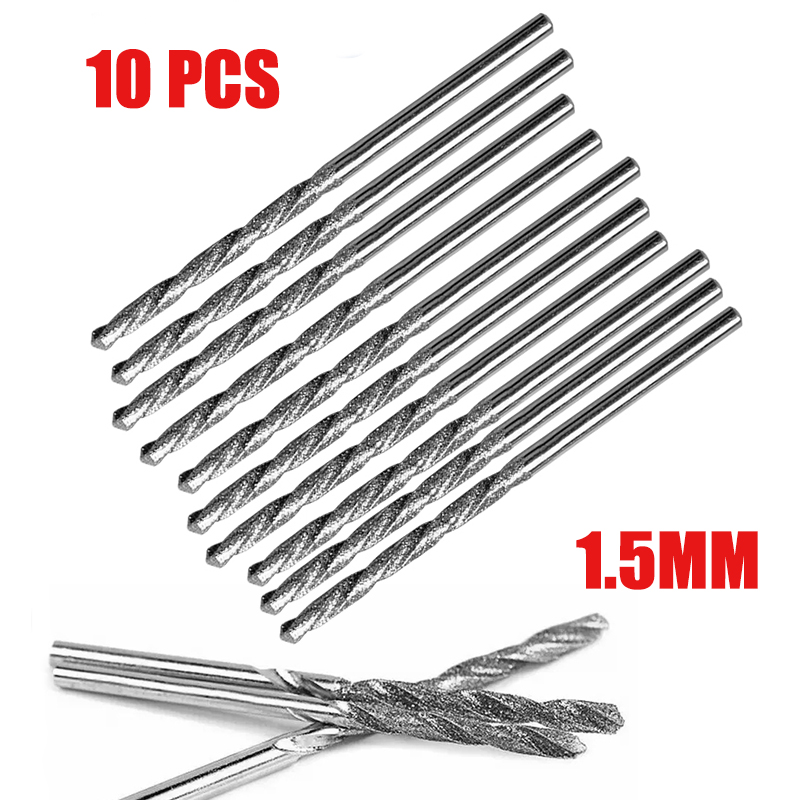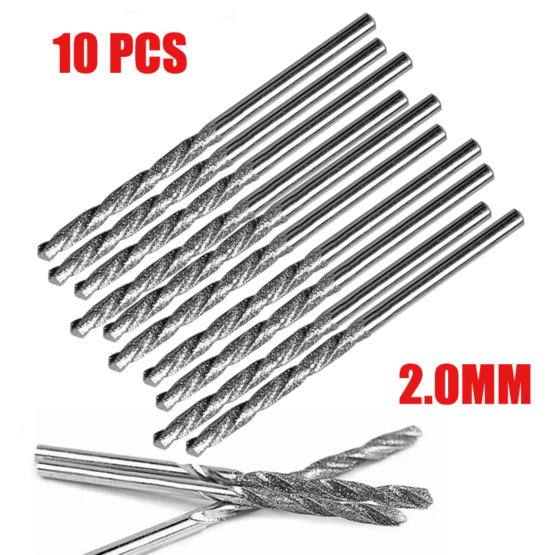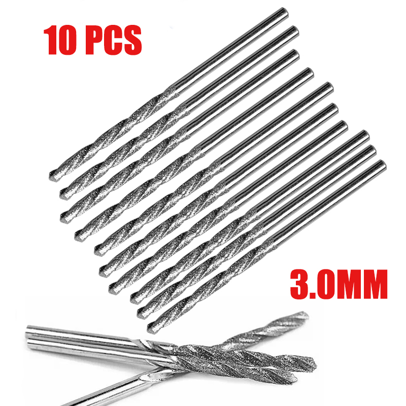 Specification: -Quality diamond coated twist drill bit -Material: hss twist drill bit , diamond coated. -Diameter: 0.8mm , 1mm , 1.2mm , 1.5mm , 2mm , 2.5mm , 3mm -Qty:10pcs Feature: -The drill bit made from HSS twist drill bit and diamond coated. -The flute is spiral groove design for easy chip removal and improved drilling efficiency -with round shank fit hand electric drills, cordless drills, bench drill and hanging mill etc. -Suitable for jewelry, jade, metal, Agate, Jade, glass, stone , gemstones, pearls, pendants, Cobblestone. Please add some water when drill a hole. Package Include: 10pcs Diamond Coated Twist Drill Bits (Qty And Diameter According to your choose.) Please N ote 1. Please allow manual measurement error of 1-5mm. Make sure you don't mind before you buy. 2. Due to lighting effects, brightness contrast Settings of the display, etc., there may be some slight differences in the hue of the picture and the actual item, please make sure you don't mind. 3. Please add some water when drilling.
