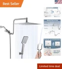 10" Rainfall Shower Head with Handheld Combo High Pressure, Upgrade 12" Extension Arm Height Adjustable, Powerful Stainless Steel Shower Head Brass Shower Holder Extra Long Shower Hose, Nickel 【Upgraded 12" Extension Arm】: Z-shaped practical shower arm, height can be adjusted up and down, so that your large size shower head is always vertical and will not hit the shower arm, instead of sloping water like ordinary straight shower arms .Made of all metal, equipped with locking screws, not easy to fall. 【Shower Head Combo】: 10" square stainless steel shower head and square ABS hand shower, the super large panel gives you the perfect experience of showering under the waterfall. The ball joint that provides 360°rotation is made of brass. Compared with plastic ball joint on the market, ours are stronger and will not break or leak. The hand shower offers a regular shower pattern and a powerful jet, enough to clean the walls of a bathtub or shower. 【Upgraded 3-Way Diverter Valve】: Made of solid brass, it can be used with a shower head/hand shower alone, or with two showers at the same time. The shower diverter has a large flow channel design with no water flow restrictions. The unique rotatable shower connector best solves the wrong angle of most handheld shower diverters to keep the hose sagging and prevent tangling in the shower. 【Solid Brass Shower Holder】: All metal, no plastic, 360°free rotation. Compared to plastics on the market that are prone to cracking and falling, our heavy duty, premium quality, waterproof and rust resistant, glue mounts will never fall off. It needs to be installed on a solid and smooth surface. After installation, it can be easily turned using the lever action of the hand shower. 【Installation & Accessories】: Easy to install, no plumber required. Use standard 1/2'' pipe threads. The water saving tablets are already installed in the shower head and hand shower and can be removed as required. Comes with 71" extra long shower hose, gloves, pipe sealing tape. Please read our instructions carefully before installation. If you have any questions, please feel free to contact me. Focus on quality and stylish bathroom life.