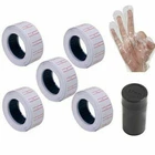 10 Roll 6000pcs White Price Tag Sticker MX 5500 Gun Adhesive Labels 1 Refill ink Features: 600 pieces labels per roll. Great for pricing or marking products. These stickers are made to go in a price tag gun(Not included). You can just as easily write a price on them and peel if off. Double Red Lines, White MX-5500 Price Labels. Specification: Material: Paper Color: White+Double red line Size: Single Sticker Package Includes: 10 Roll Price Label Sticker 1x Refill Ink 10pcs Disposable Gloves