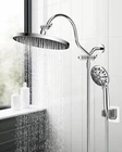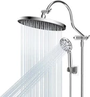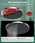 10'' Self-cleaning Rainfall Shower Head, High Pressure Handheld Shower Head, Showerhead Combo with 12'' Adjustable Shower Extension Arm, 7-Spray, 71'' Hose, Showerhead Holder, Chrome 【10'' Large Shower Head】The large rainfall shower head is constructed with high-quality ABS to SATISFACTION GUARANTEE rust resistance, lightweight design, durability, and a long service life. Combined ultra-thin design with air-in technology, the large shower head has 116 splash jets that delivering a rain spray. The solid brass ball joint adjusts the shower head to any angle you want to enjoy a relaxing hotel-style bathing experience. 【Self-cleaning Nozzles】Featuring built-in cleaning nozzles, these shower heads are designed to prevent obstructions and clogs, ensuring a consistently strong and uninterrupted water flow for a refreshing and satisfying shower experience every time. The self-cleaning nozzles retract effortlessly during use, allowing water to flow freely, and automatically reset and cleanse any dirt or debris from the outlet holes once the water stops, maintaining optimal performance. 【Adjustable Shower Arm Extension】12 Inch upgraded curved shower head arm extension is made of solid brass and stainless steel. It fits any rain shower head or handheld shower head, height can be adjusted up and down, shower head is always vertical in your large size and will not hit the shower arm, instead of slopping water like ordinary straight shower arms. Curved shape design enhances its bearing capacity, high rises your shower head, and can achieve vertical water. 【7 Settings Handheld Shower Head】5-inch shower head has soft rubber spray nozzles for easy cleaning. Chrome finished shower head has pressure-boosting effect on the ultimate shower experience, allowing you to choose from Seven (7) sprays powerful high pressure settings to best suit your need. The water flow regulator can adjust the water pressure to save water everyday. It's great for bathtub cleaning, bathroom hair washing, pet shower, or baby bath. 【All Metal 3-Way Diverter Valve】 shower head combo works with all standard 1/2'' pipe threads, and is very easy to install without tools. The 3-way diverter can be used with a shower head or with two showers at the same time. Our 3-way diverter and shower arm are designed to be connected together without leaking and shaking, while ordinary 3-way diverter is separated from extension arm, and it needs to be installed and connected together, which will lead to leak and shake.