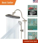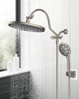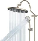 10'' Self-cleaning Rainfall Shower Head, High Pressure Handheld Shower Head, Showerhead Combo with 12'' Adjustable Shower Extension Arm, 7-Spray, 71'' Hose, Showerhead Holder, Brushed Nickel Large 10'' Shower Head: The large rainfall shower head is constructed with high-quality ABS to SATISFACTION GUARANTEE rust resistance, lightweight design, durability, and a long service life. Combined ultra-thin design with air-in technology, the large shower head has 116 splash jets that delivering a rain spray. The solid brass ball joint adjusts the shower head to any angle you want to enjoy a relaxing hotel-style bathing experience Self-cleaning Nozzles: Featuring built-in cleaning nozzles, these shower heads are designed to prevent obstructions and clogs, ensuring a consistently strong and uninterrupted water flow for a refreshing and satisfying shower experience every time. The self-cleaning nozzles retract effortlessly during use, allowing water to flow freely, and automatically reset and cleanse any dirt or debris from the outlet holes once the water stops, maintaining optimal performance Adjustable Shower Arm Extension: 12 Inch upgraded curved shower head arm extension is made of solid brass and stainless steel. It fits any rain shower head or handheld shower head, height can be adjusted up and down, shower head is always vertical in your large size and will not hit the shower arm, instead of slopping water like ordinary straight shower arms. Curved shape design enhances its bearing capacity, high rises your shower head, and can achieve vertical water Upgraded 7 Settings Handheld Shower Head: 5-inch shower head has soft rubber spray nozzles for easy cleaning. Chrome finished shower head has pressure-boosting effect on the ultimate shower experience, allowing you to choose from 7 sprays powerful high pressure settings to best suit your need. The water flow regulator can adjust the water pressure to save water everyday. It's great for bathtub cleaning, bathroom hair washing, pet shower, or baby bath All Metal 3-Way Diverter Valve: shower head combo works with all standard 1/2'' pipe threads, and is very easy to install without tools. The 3-way diverter can be used with a shower head or with two showers at the same time. Our 3-way diverter and shower arm are designed to be connected together without leaking and shaking, while ordinary 3-way diverter is separated from extension arm, and it needs to be installed and connected together, which will lead to leak and shake