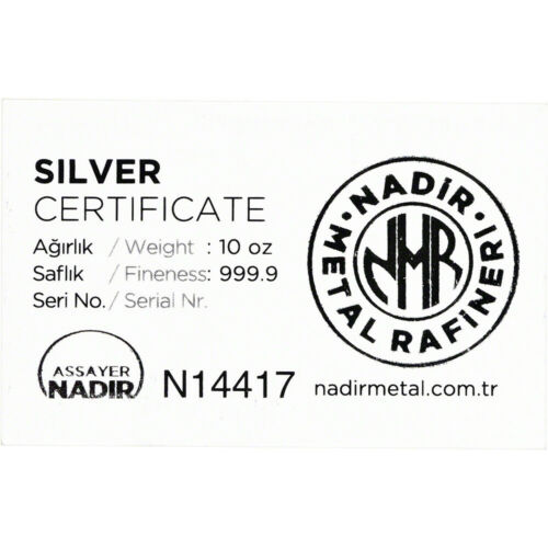 Serving Collectors and Investors for Over 50 Years MENU Store Pages Home About Us Payment Shipping Returns FAQ Contact Us Store Categories Home • About Us • Payment • Shipping • Returns • FAQ • Contact Us Deal of the Day Shop by Category Satisfaction Guaranteed BBB Member A+ Rating 10 oz. Nadir Metal Rafineri Refinery Silver Bar - 999.9 Fine Click Thumbnails to Enlarge Product Description 10 oz. Nadir Metal Rafineri Refinery Silver Bar - 999.9 Fine Nadir Metal Rafineri established in 1967 as Nadir Tutunku, has refined gold since 1975. It has been known as Nadir Metal Rafineri A.S. since 2006. Nadir Metal Rafineri was accredited by the London Bullion Market Associate (LBMA) in 2011. This Nadir Metal Rafineri silver bar is 999.9 Fine and is a convenient way to include bullion in your investment portfolio. The obverse of the 10 oz. Nadir Metal Rafineri bar features a unique serial number, the Nadir Metal Rafineri logo and trademark along with inscriptions 10 oz SILVER 999.9. The reverse is plain. This listing uses "Reference Images" The "Reference Images" used in this listing Description were created by Liberty Coin for reference only to depict the quality of the item you will receive. You will NOT receive the exact item, with the same certificate number, that was photographed to create the Reference Images. However, the actual item you will receive is guaranteed to be similar to that shown and exactly as described. Product Specifications Year Mint Mark Mint Location Denomination 10 oz. Grading Service Uncertified Grade Metal Type Silver Actual Metal Content 10 troy oz Fineness 999.9 Manufacturer Nadir Metal Rafineri Diameter Length 90 mm Width 40 mm Thickness 9 mm Weight 10 oz Composition 999.9 Fine Silver Designer Edge Type Coin# Packaging Original Plastic Packaging with Numbered Assay Certificate Payment Immediate Payment by PayPal is required on all purchases except Auction items. Although Payment through PayPal is required, PayPal will accept all major Credit Cards to make a PayPal payment. Items purchased in an Auction require payment by PayPal within 3 days of purchase. Auction payments are managed automatically by eBay. If an Auction item is not paid for within three (3) days eBay will automatically open an Unpaid Item Case. Liberty Coin is a California-based retailer and is required to collect CA Sales Tax on all purchases of collectible coins or precious metal bullion shipped within California. The Sales Tax Rate is based upon our Huntington Beach 92646 location and the Rate is currently 7.75%. There are two possible excemptions from CA Sales Tax when purchasing collectible coins or precious metal bullion: (a) Purchases for Resale where the purchaser has a valid CA Seller Permit (b) Single Invoice/Order total of $1,500 or more Unless a purchase qualifies for one of the above exemptions, it is subject to CA Sales Tax. Shipping Order Handling Time All non-Bullion product Orders are processed the Same Day if we receive confirmed Payment before 2 pm Pacific Time. Due to additional Safety & Security policies, Orders for Bullion products cannot be processed Same Day. Bullion product Orders are processed within Two (2) Business Days. Orders for products purchased in "eBay Deals" may take up to Two (2) Business Days for handling due to high volume. U.S. Domestic Shipping Carrier and Service Level for Standard Free Shipping is based upon package value as detailed below: Order Total Shipping Method Less than $500 USPS First Class $500 - $749.99 USPS First Class with Signature Confirmation $750 - $4,999.99 USPS Priority with Signature Confirmation $5,000 or more UPS 2 Day Air with Signature Confirmation Shipping Methods listed above are typical. However, we reserve the right to make Carrier and Service Level changes due to operating conditions. All packages valued at $500 or higher are shipped with Signature Confirmation required. Options to Expedite Shipping for an additional cost are presented at Checkout if available - Expedited Shipping costs vary depending on value, weight, destination and service level. Tracking Numbers Tracking Numbers are uploaded to eBay as orders are shipped. You will receive an automated Ship Notification email message from eBay with Carrier and Tracking information when the Order has shipped. Delivery Time Estimated or Guaranteed Delivery Dates are provided at the time your Order is placed. Delivery times vary depending on destination, carrier, shipping method and service level. Transit Insurance All shipments are insured for their full value while in transit to the Destination Address. In the unlikely event that your package does not arrive or is damaged in transit, please contact us through eBay messaging in order to initiate a Claim. Changes to Shipping Address eBay and PayPal policy requires that Sellers only ship to the address provided with your eBay Order and PayPal payment confirmation. If you need to change the Address you should cancel your order and place a new order using the correct address. International Shipping International shipping is available on most products through the eBay Global Shipping Program. We do not ship Bullion products internationally at this time and we only ship internationally through the eBay Global Shipping Program. International shipping is available to most countries although certain restrictions apply and we do not ship to all countries - please refer to each listing to verify that we ship to a particular country and to see the cost for shipping and customs clearance. Multiple items purchased for shipping through the eBay Global Shipping Program cannot be combined into a single Invoice or Shipment. For further information on International Shipping please contact eBay Customer Support for the Global Shipping Program. Returns Policy 100% Customer Satisfaction is our most important goal - all of our products are completely guaranteed. If you are not completely satisfied with your purchase please contact us through