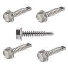 #10 x 1/2" Hex Washer Head Self Drilling Screws Stainless Steel Metal Qty25 Fastenere Self-Drilling Screws, also known as Tek screws, eliminate the need for a pre-drilled hole. The length of the drill point determines the material thickness which the screw can reliably penetrate. When selecting a self-drilling screw design, it is important to consider the material thickness and type of materials to be joined. These sheet metal screws are highly versatile and are used to attached metal, wood, fiberglass and plastic. The sharp threads draw material together and ensure a secure hold. General Product Information Head Style : Hex Washer Drive Style : Socket Drive Size : 5/16" Thread : #10 Length : 1/2" Material : Stainless Steel 410 Quantity of Screws in Package : 25 Detailed Product Information: Head Width Flat to Flat : 5/16" Head Diameter : 0.414" Head Height : 0.151" Thread Diameter : 0.190" Thread Coverage : Full Thread Thread Length : 0.500 Point Style : Self-Drilling Key Notes: Hex washer head self drilling screws have a drill point at the tip of the thread drills its own pilot hole in to metal allowing for quick installation and fastening while saving time and effort with just a single step Made from an ultra strong stainless steel grade 410 giving them the ability to drill through sheet metal and stainless steel while still being wear resistant and offering a mild chemical corrosion protection; these screws are not intended for use with aluminun as the higher iron content in the fastener will cause embrittlement; 410 Stainless steel is always MAGNETIC due to the higher iron content giving the drilling capabilities These screws have a hex head that can be driven with a nut driver or socket and can be adjusted with a wrench; the built in flanged washer adds a secure grip to the material being fastened into while also preventing the head from crushing thin metal The self drilling point also referred to as a tek can self drill metal up to a thickness of 0.090 inches and is best used with a lot of pressure and a slow drill speed; if drilling too fast you could run the risk of over heating the metal drilling tip which could cause it to wear out or warp Fastenere brand self drilling tapping screws will tap their own thread into the material being screwed into creating a long lasting vibration resistant connection that is the choice for use with corrugated roof siding and sheet metal applications Shipping: All orders placed before 3:30 pm EST Will Ship Same Day Tracking is provided on ALL Orders Priority Mail Shipping service is offered at a discount of only $3.95 UPS Ground UPS Next Day Air is available, Please inquire for pricing Returns : ALL returns are accepted if returned within 60 days. Money Back or exchange guaranteed. NO Restocking Fees. For YOU, we constantly strive to find ways of improving our performance.