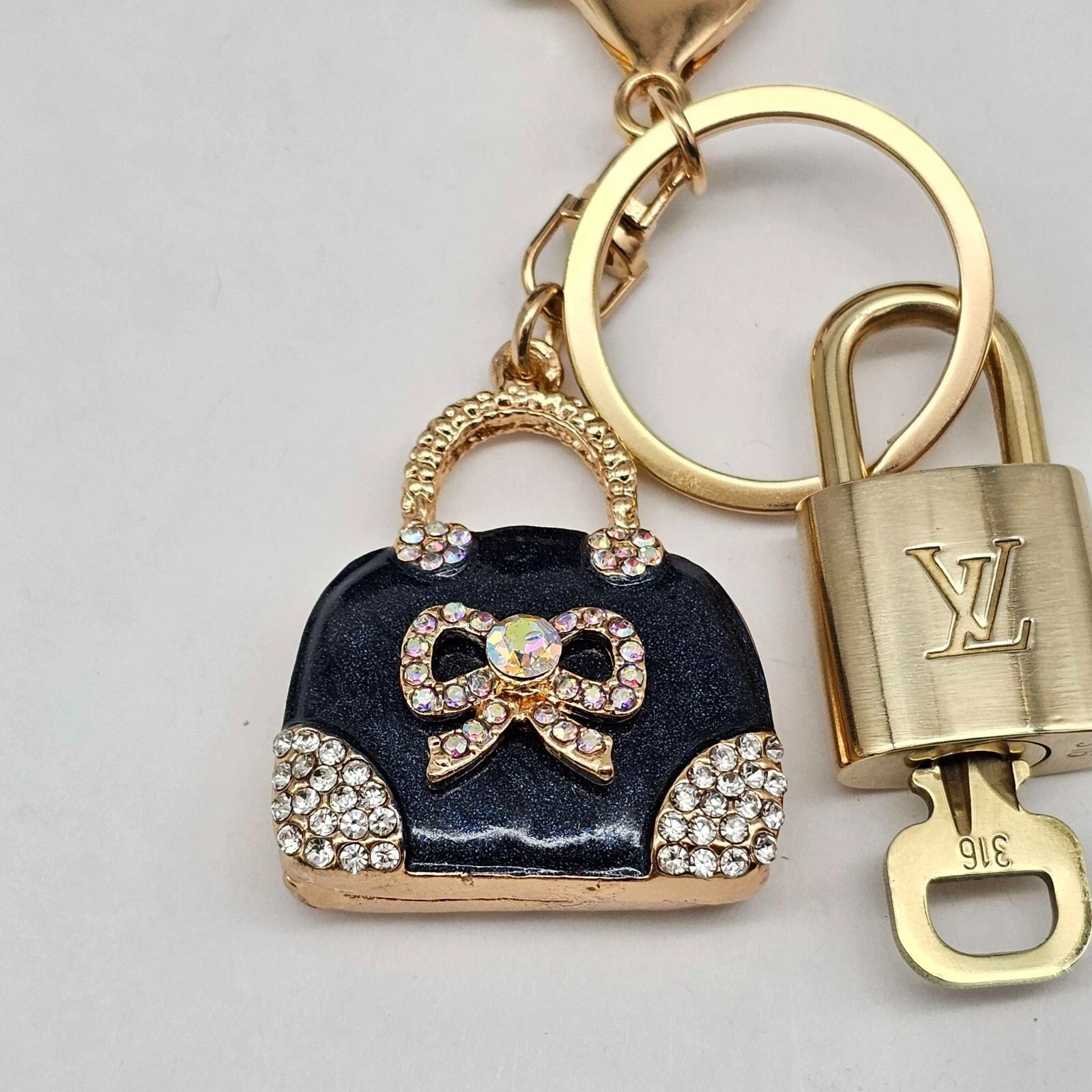 Perfect for this holiday gift to your loved ones! Lock & Key: Louis Vuitton Excellent Preowned Shiny Gold Charm: Not from Louis Vuitton Unbranded Brandnew bag charm Style: Keycharm / locks /Bagcharm/ Necklaces/Keychain Country Manufactured: France SKU: 20-11192025 IMPORTANT NOTE: The Louis Vuitton lock and key is 100% authentic Louis Vuitton, but the keycharm or bagcharm is NOT from Louis Vuitton. The bagcharm is unbranded new. You can use the lock and key for locking, pendant, or any decoration. FEEDBACK: Your satisfaction is our top priority. We strive for complete accuracy in describing each item?s condition. Please note that colors may vary slightly due to photo enlargement or monitor settings. Occasionally, items may be found damaged and cannot be shipped. Kindly review all photos and descriptions carefully before purchasing. ABOUT US: We are Elisha Luxe Fashion LLC, a licensed and registered company in Tampa, Florida. We specialize in selling pre-owned authentic designer brands such as bags, wallets, accessorries and korean skincare products.