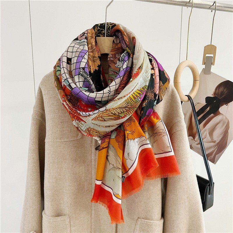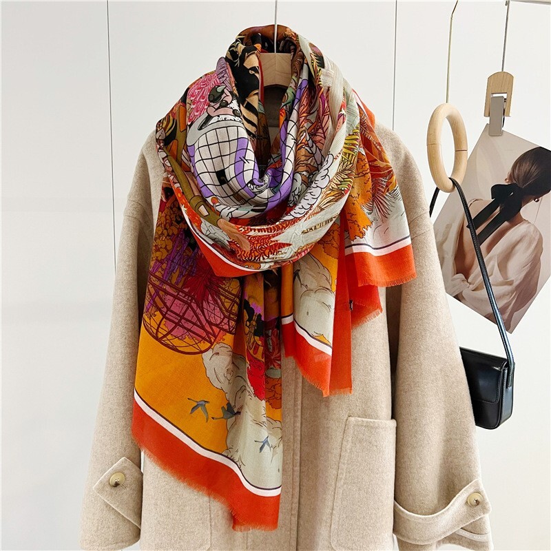 70% Cashmere 30% Silk Nature Print Double Face Shawl by Sallys 53"