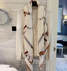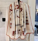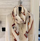 100% Cashmere Wrap Shawl Square Blue Horsebit Print Bandanna Scarf 130X130cm NEW