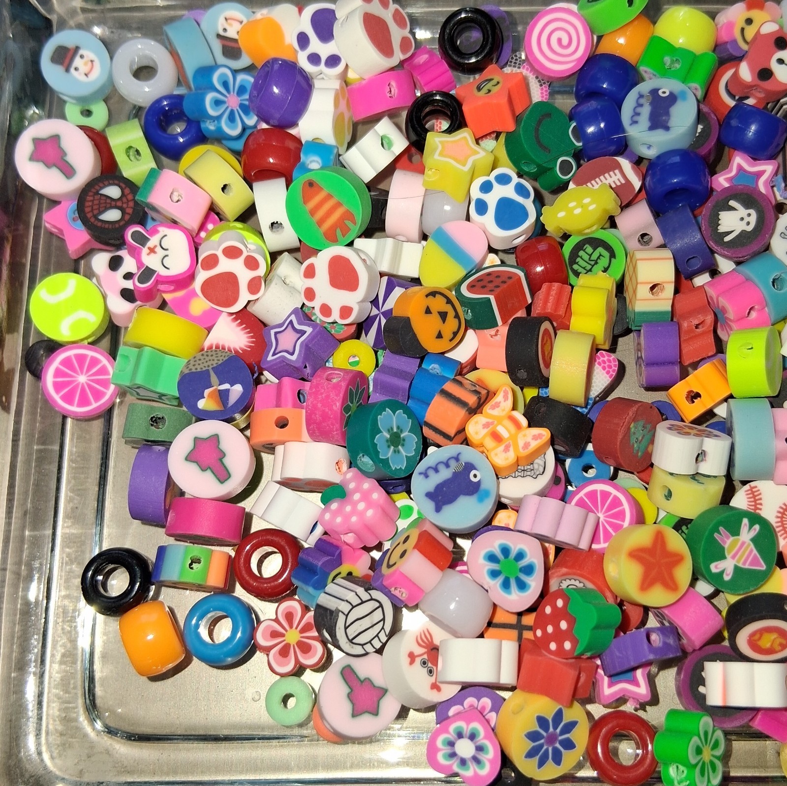 This product is a set of over 100 colorful and detailed polymer clay beads in round shape plus other shapes measuring between 6-6.9mm in size. The beads are designed specifically for kids and teens to create their own jewelry and crafts.