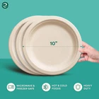 πππ-πππππππππ : Compostable 10 Inch Paper Plates are made from sugarcane extract, offering a sturdy and eco-friendly alternative to traditional plastic plates. πππππππππππππ πππ πππππππππππ: These disposable plates are biodegradable and compostable, breaking down in 3-6 months under ideal conditions, reducing waste and environmental impact. ππππππ πππ πππππππππππ: BPI certified and TUV Austria certified, these plates are safe to dispose off, leaving no harmful waste behind, making them a great choice for your home and the environment. πππ π πππ ππππππππ-π πππ: Our plates are made from all-natural, bio-based materials, free from harmful chemicals like BPA and PFAS, ensuring your food stays safe and healthy. πππππ-ππππ ππππππ: These plates are heavy-duty and designed without plastic or wax lining, making them cut-resistant, leak-resistant, and able to withstand heavy meals. πππ π π ππ π πππ: Our plates are made from all-natural, bio-based materials, ensuring that your food stays safe and free from harmful chemicals. πππππππππ πππ π ππππππ πππ π: These plates can be safely used in the microwave and freezer, offering convenience and flexibility for your food serving needs. πππππππππ πππ ππππππππ: These sturdy plates are perfect for all occasions, from parties and weddings to camping and birthdays, providing reliable strength to serve all types of food. πππππ ππππ: This pack contains 100 plates, offering great value for your money and ensuring you have plenty of plates for your event or party.
