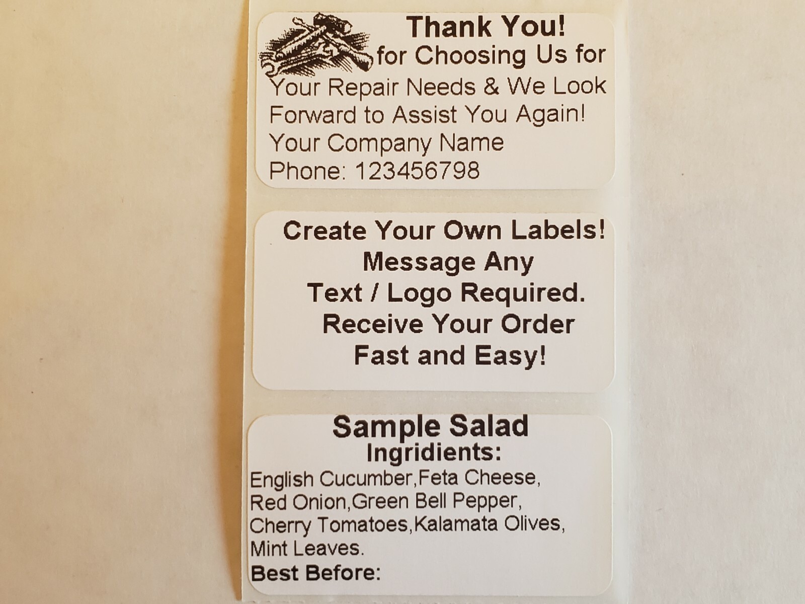 These custom labels are perfect for organizing and branding—high-quality glossy finish, strong adhesive, and crisp printing. The 2x1 size is versatile for shipping, inventory, or pricing. Love that they support custom text, logos, and variable data—great for businesses or personal use. Fast turnaround and excellent customer service. Highly recommend!