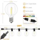 About this item 【 Dimmable Brightness 】- This G40 string light is compatible with dimmer to diming the brightness (dimmer not included in the package). You can DIY to create a warm and romantic atmosphere, bring you relaxation and happiness. All bulbs work independently, and the extinguishing of one bulb does not affect other bulbs 【 Shatterproof & Durable 】- These outside string lights are made of premium plastic, which is shatterproof and durable, so you don't have to worry about broken glass, ensuring the safety of your family and friends. Efficient LED chips can save more than 90% of energy than incandescent bulbs and have a service life of up to 30,000 hours 【 Waterproof 】- This outdoor patio lights is made of thick unbreakable PET material, these decorative lights will normally work all year round, whether it is raining, snowing, or humid weather. It will not cause any damage to these outdoor string lights. It is an ideal gift for mom, dad, grandma, grandparents, suitable as gifts for women, men, gardening gifts, and Christmas gifts 【 Easy to Install 】- There are 2 hooks on the top of each bulb socket so that you can hang it anywhere you want. Not only suitable for indoors, but also an excellent outdoor decoration for garden, backyard, yard, bistro, balcony, porch, terrace, pergola, gazebo, tent, pool umbrella, cafe, bedroom, living room, market, wedding, birthday, Christmas party, outdoor furniture or other occasions. Perfect garden, yard, wedding, home, and house decor