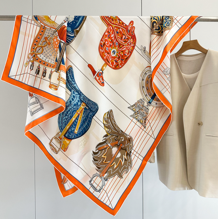 100% Mulberry Silk 135X135cm Square Scarf Women Neckerchief Wrap pony Print new